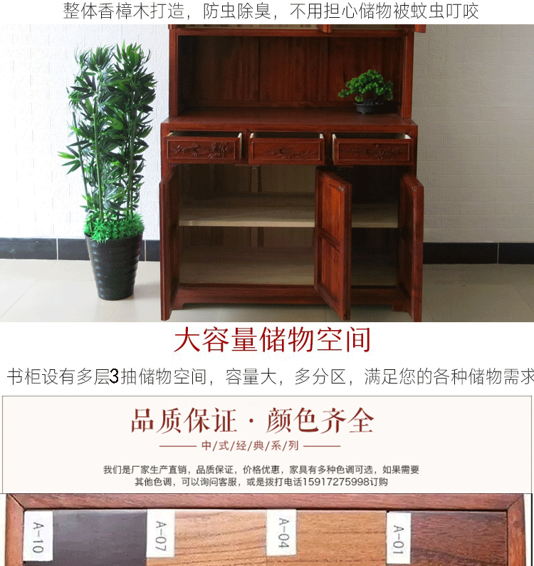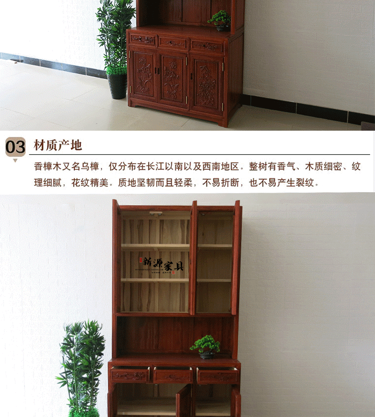 Камфора деревянная анти -дневная резьба книга, сплошной деревянной шкаф для гостиной