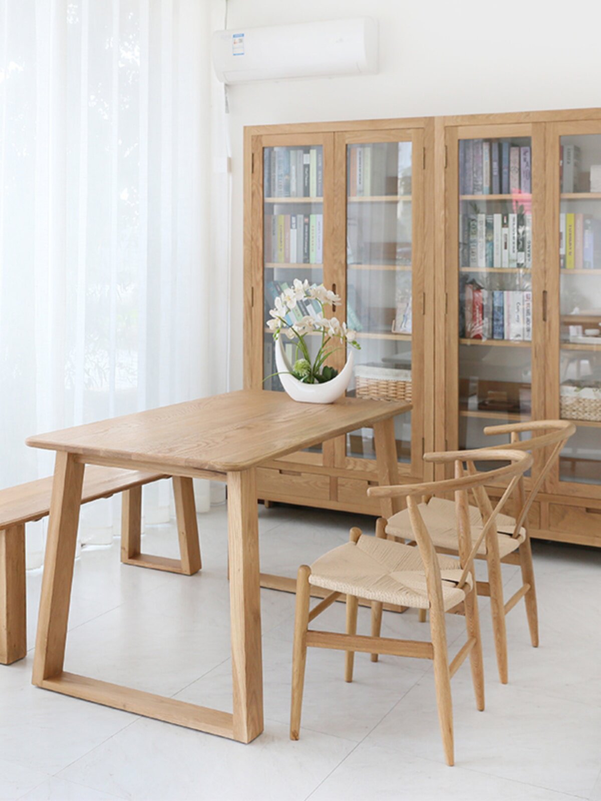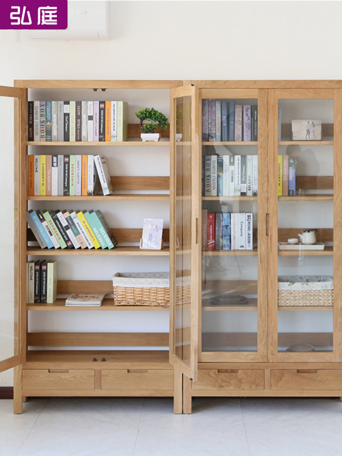 Дубовый книжный шкаф из натурального дерева, современная стеклянная книжная полка, мебель, популярно в интернете