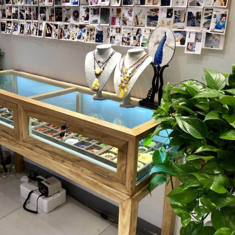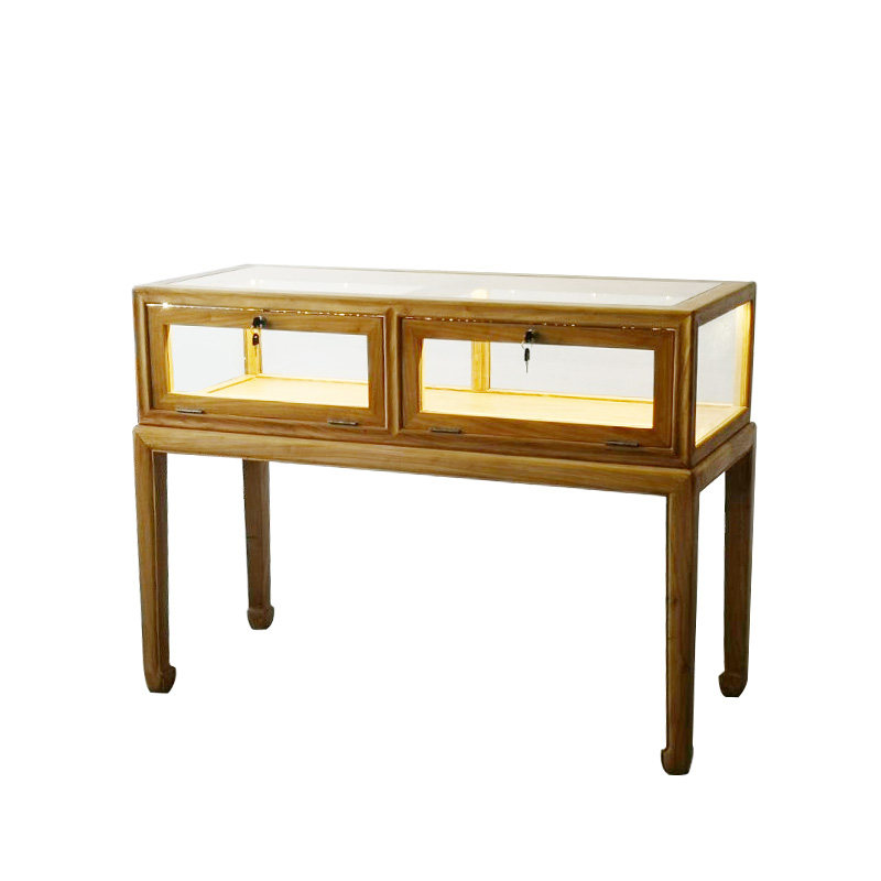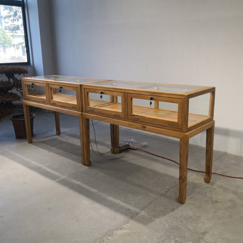 [老北榆木艺坊老榆木新中式实木珠宝首饰文玩摆件玻璃柜台展示柜]