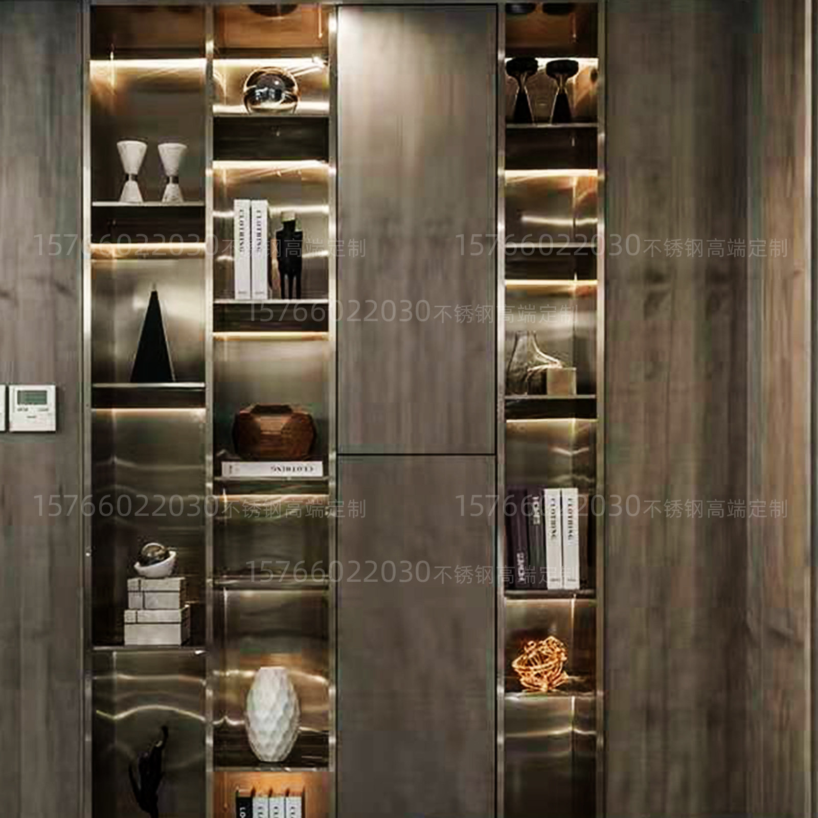 Современный стенд из нержавеющей стали, встроенный книжный шкаф, делается под заказ