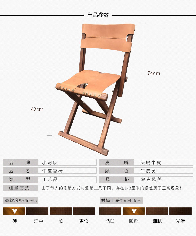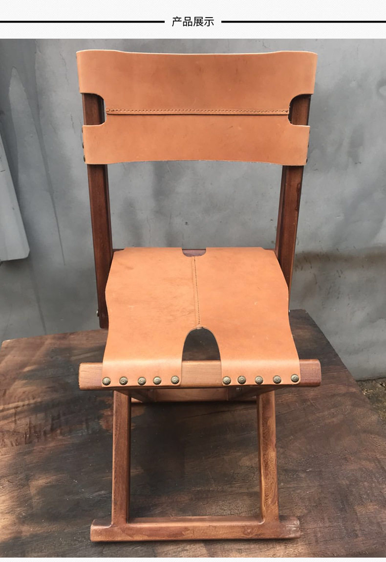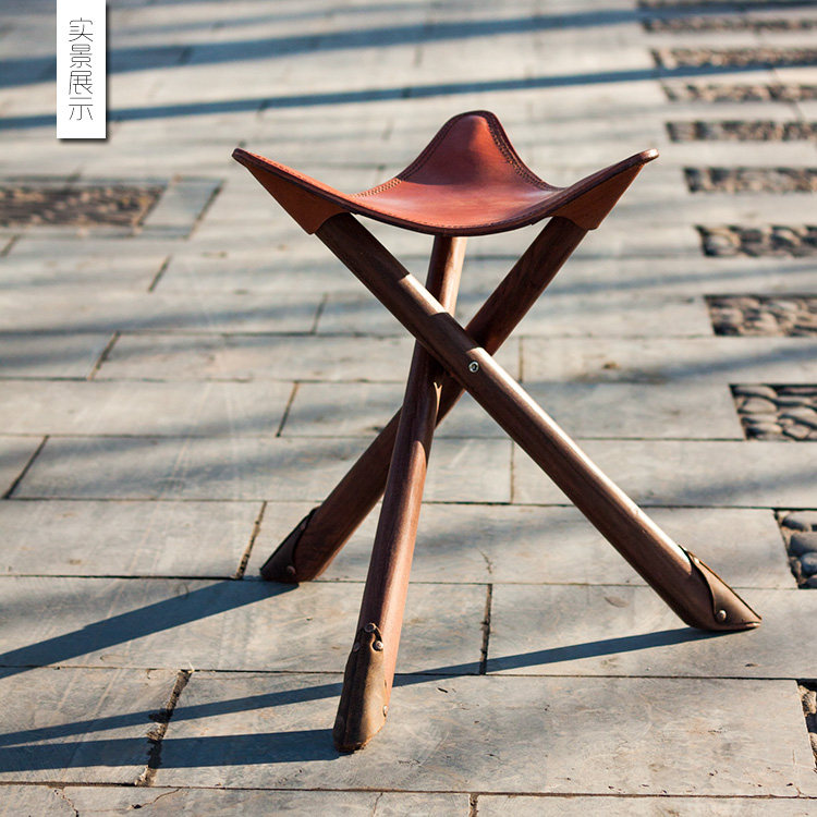 Ретро портативная дорожная кожаная складная мебель из натурального дерева