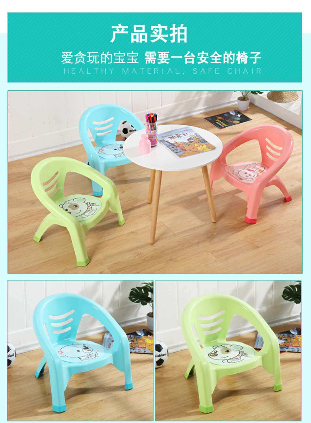Детское мультяшное нескользящое пластиковое кресло для детского сада, увеличенная толщина