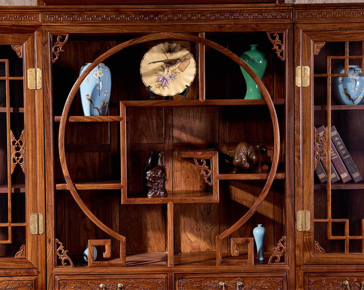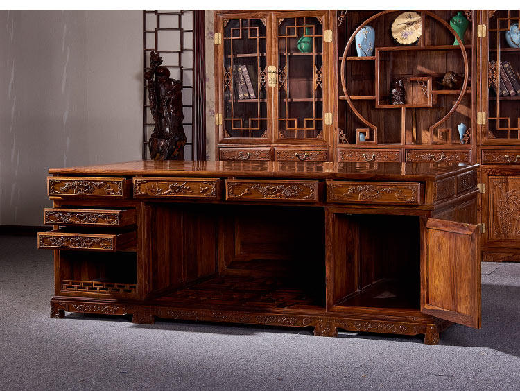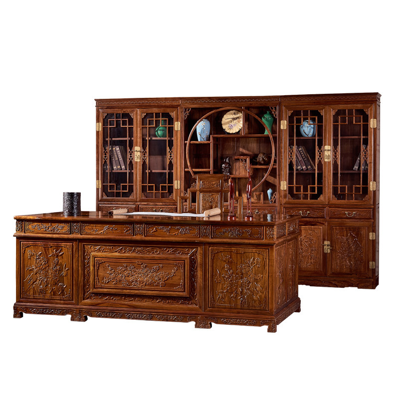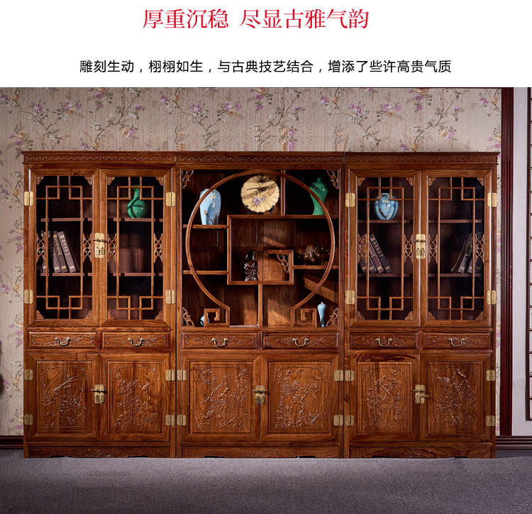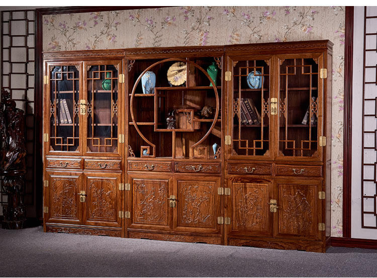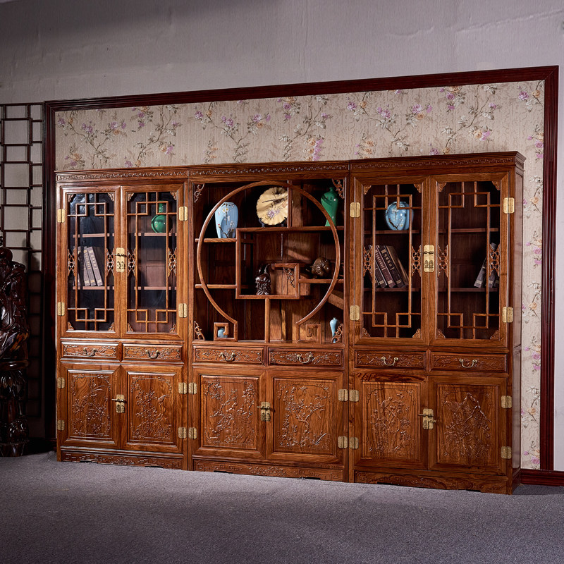Редвудская мебель ежа ежа ежа розовообразной стойки китайская учебная комната Трехгрупп Книжный шкаф целый набор резных больших классов.