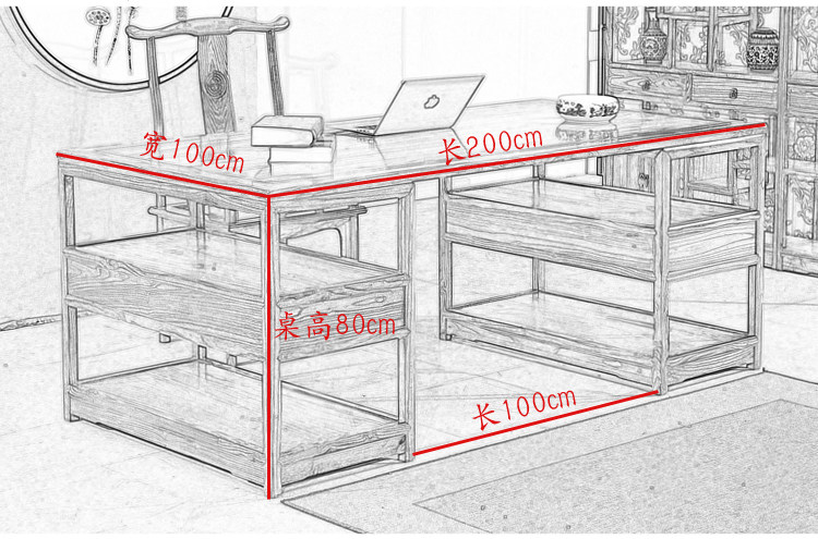 Новый китайский стиль каллиграфия и рисовать Стол Стол Простой комбинированный стол с твердым древесином антиквариат -каллиграфия.