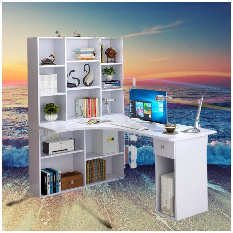 Детский L -образованный настольный компьютер встроенный стол с стулом, простая книжная полка Домашний книжный шкаф Комбинация студентов -мальчика угол