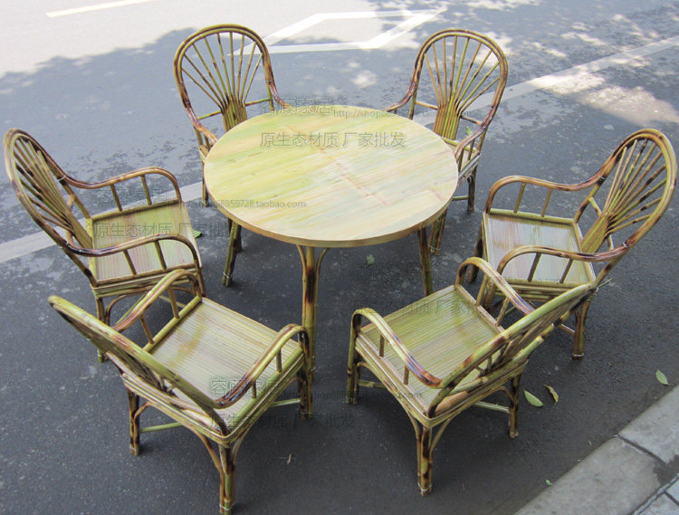 Установите полный бамбуковый стол, ресторан ресторана для стула ресторана с одним диваном стул, стул, фермерский дом 6+1 стол, стул, бамбуковая мебель