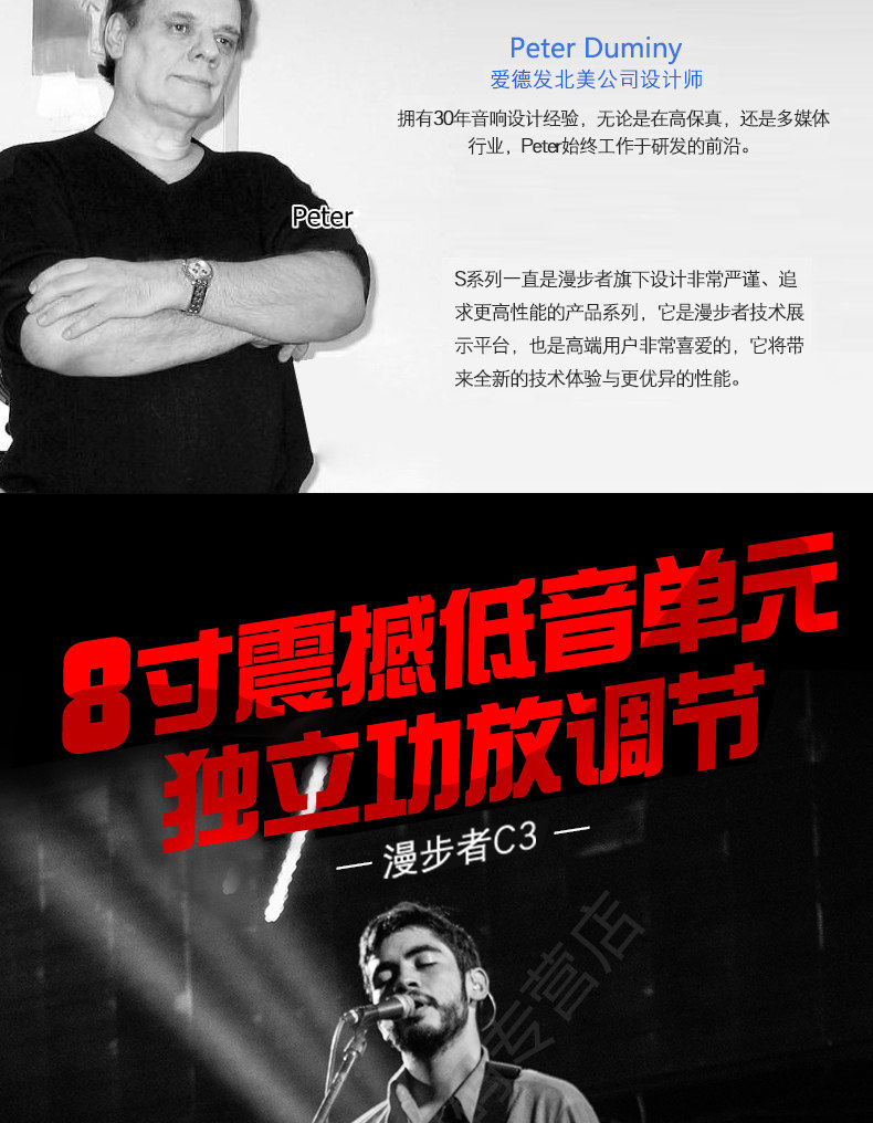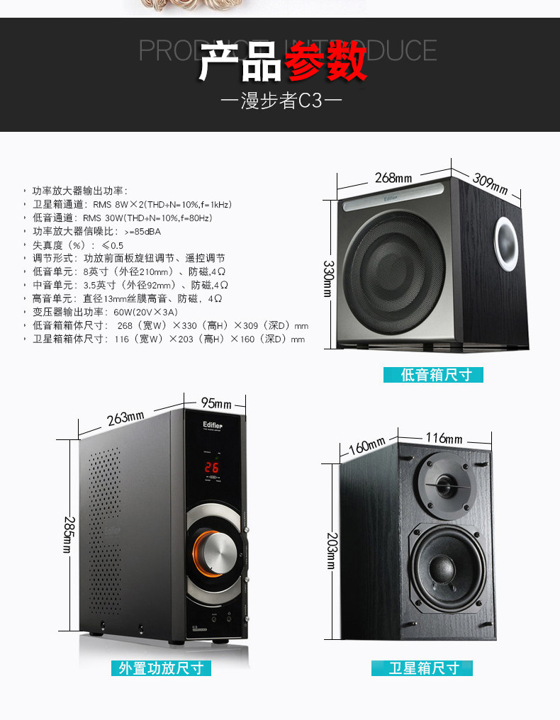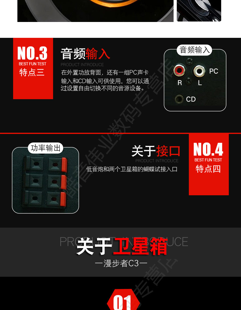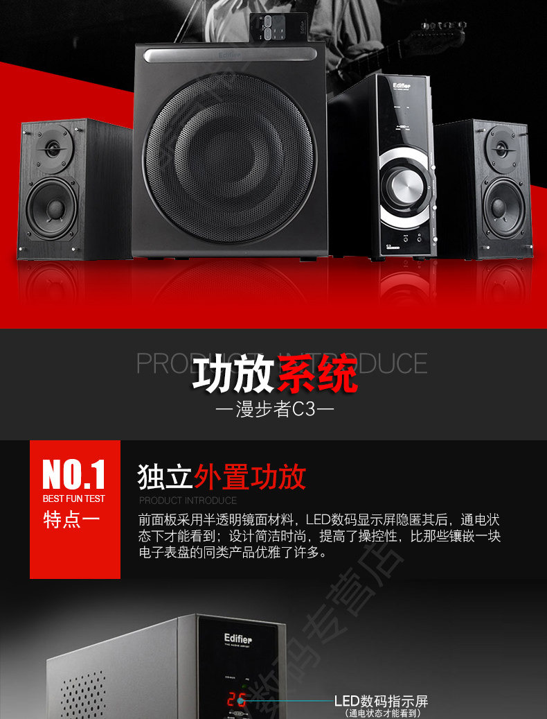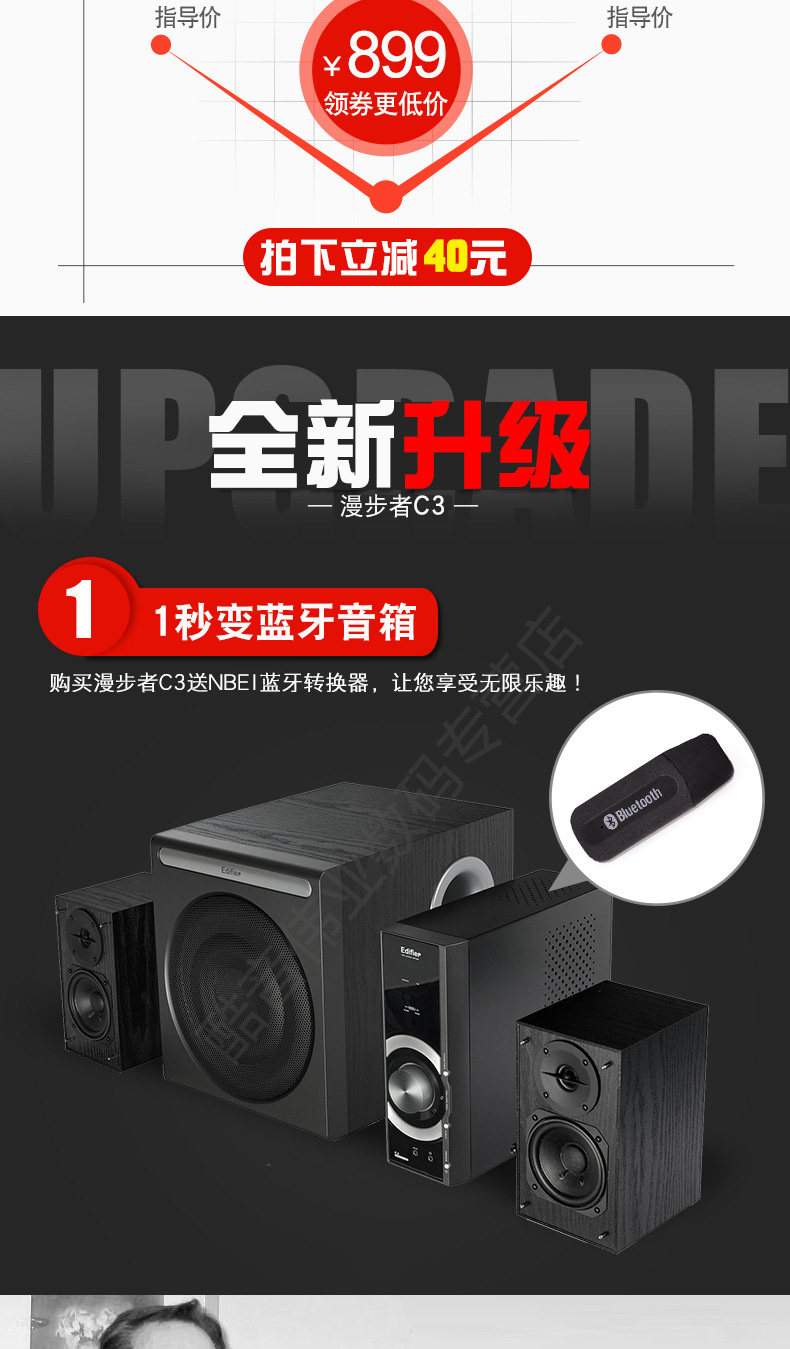 Walkman C3 -2,1+1 мультимедийный динамик, обновленная версия C2 с высокоэтапным независимым усилителем мощности с 8 -дюймовым крупным басовым динамиком и 3,5 -дюймовым средним блок. Бас растут и шокирует. довольно удобно.