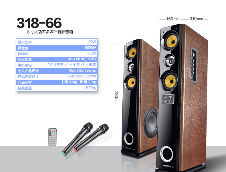 HYUNDAI/现代 318-66 Спикер домашнего кинотеатра Home Living Room ТВ-компьютер посадка деревянная аудио