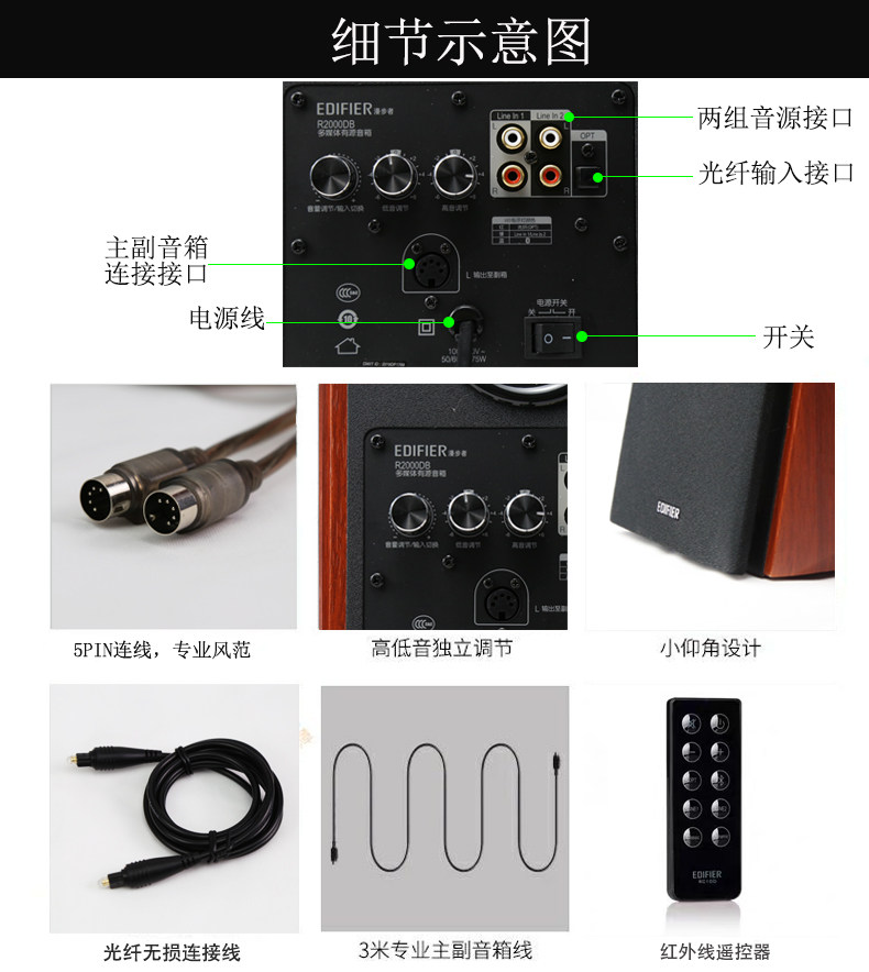 Edifier/漫步者 R2000DB Классическая версия динамика HiFi2.0 Bluetooth Wireless Home Wood Audio