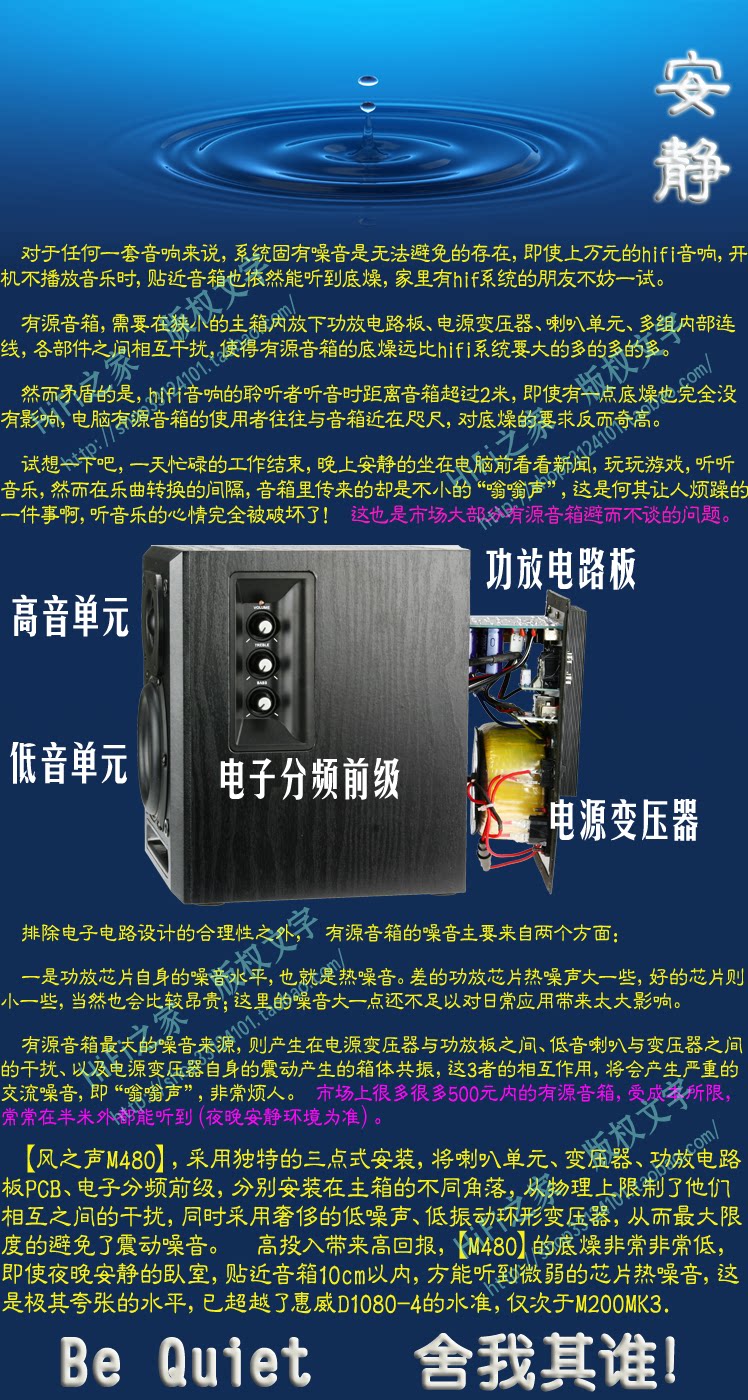 2. Дизайн усилителя мощности настольного динамика должен быть разумным. Не должно быть большего уровня связи нижний шум: использование компьютера. ближе к динамику. Если контроль шума в динамике не очень хороший. Когда наступит разрыв между песней и нижним шумом, это повлияет на настроение слушателя.Исходные динамики должны собирать трансформаторы, рога, усилители и различные соединения в узкой коробке. Управление нижним шумом очень проверено.——Даже хорошо известный определенное престиж, все протестировали, чтобы искать это.В начале дизайна M480 придает большое значение нижнему шуму. Он применяет множественные средства управления, и эффект идеально в пределах 10 см от спикера. Освященная похвала;