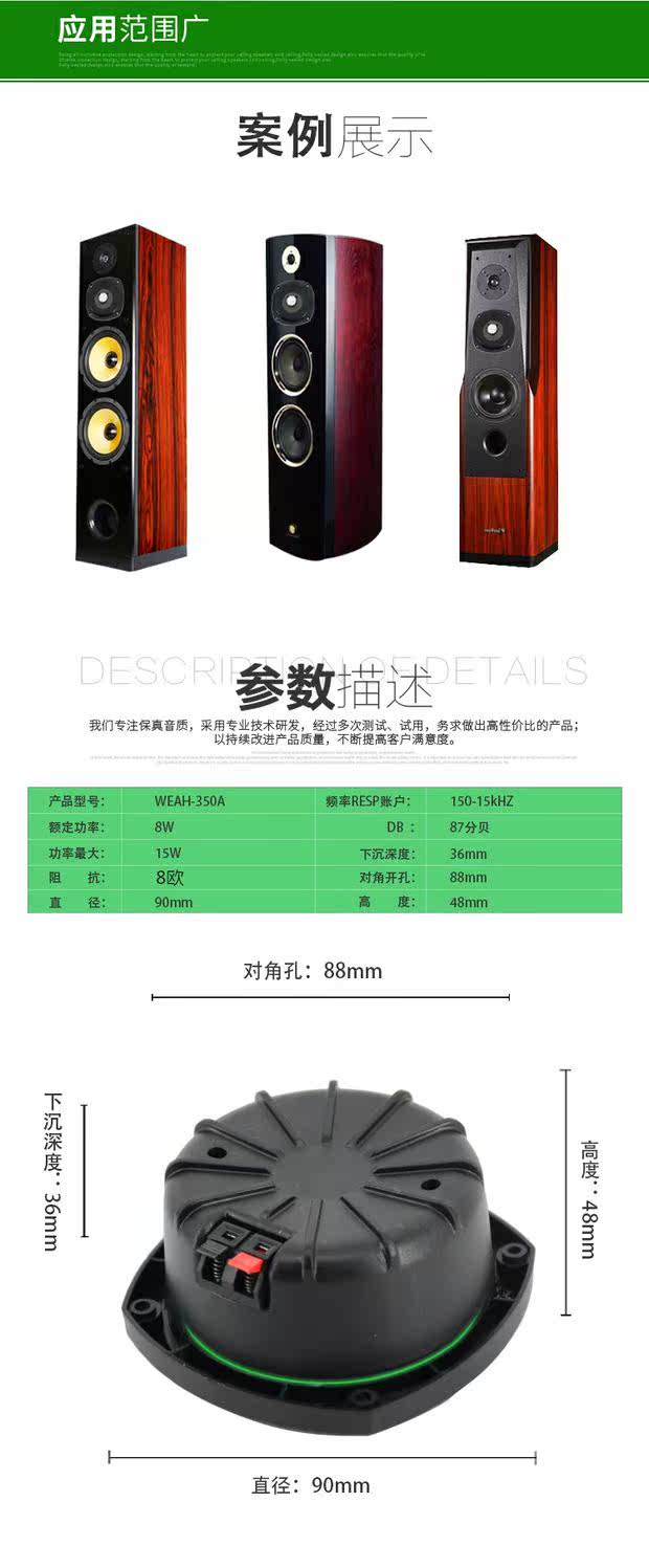 Пассивный динамик автомобиль модификация звука среднечастотная актриса человеческого голоса WEAH-350 Высокопроизводительный динамик