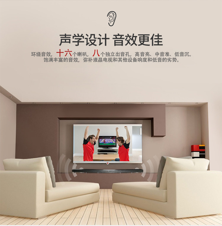 Инновационная двойная комбинация эхо -стена, 16 независимых звуковых отверстий в 16 динамиках обеспечивают сбалансированную производительность трех уровней: высокие, средние и низкие уровни. не занимает место и чувствует себя прекрасным аудиовизуальным.Цена - это цена.