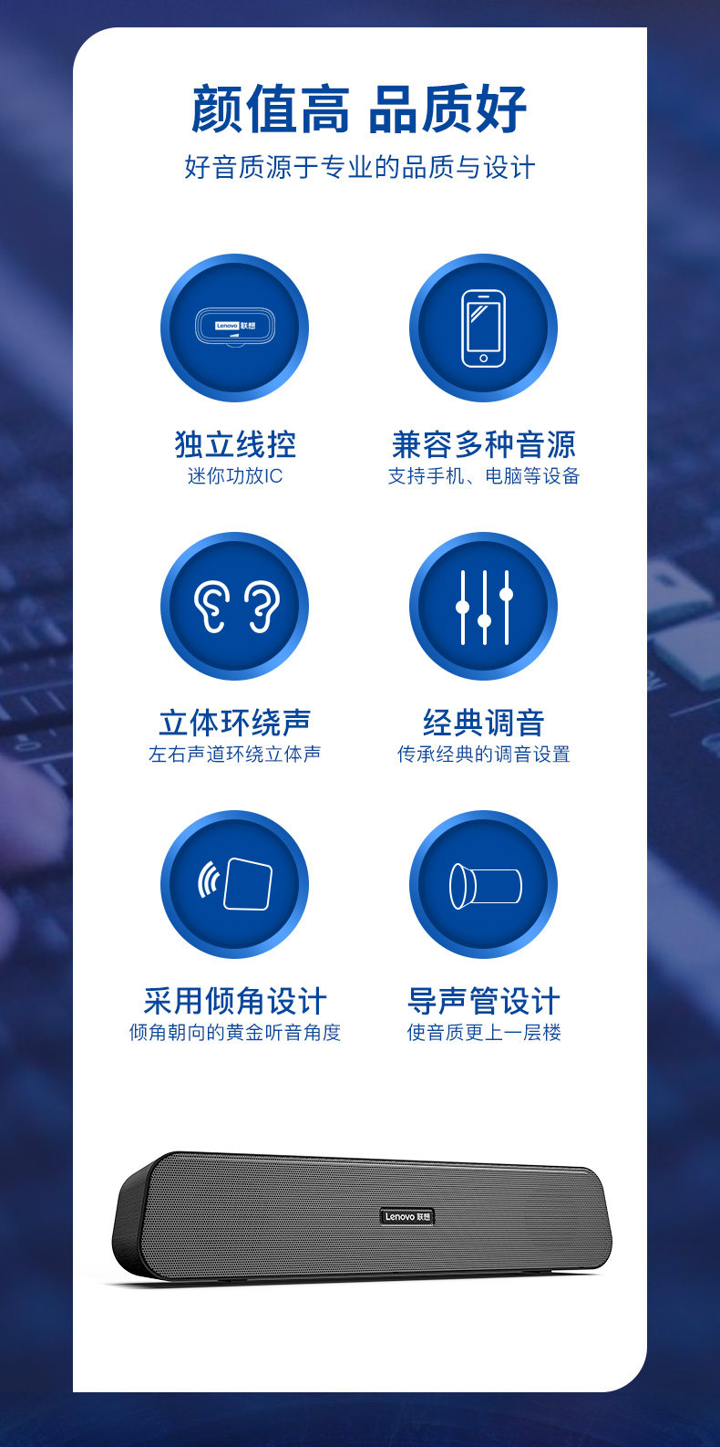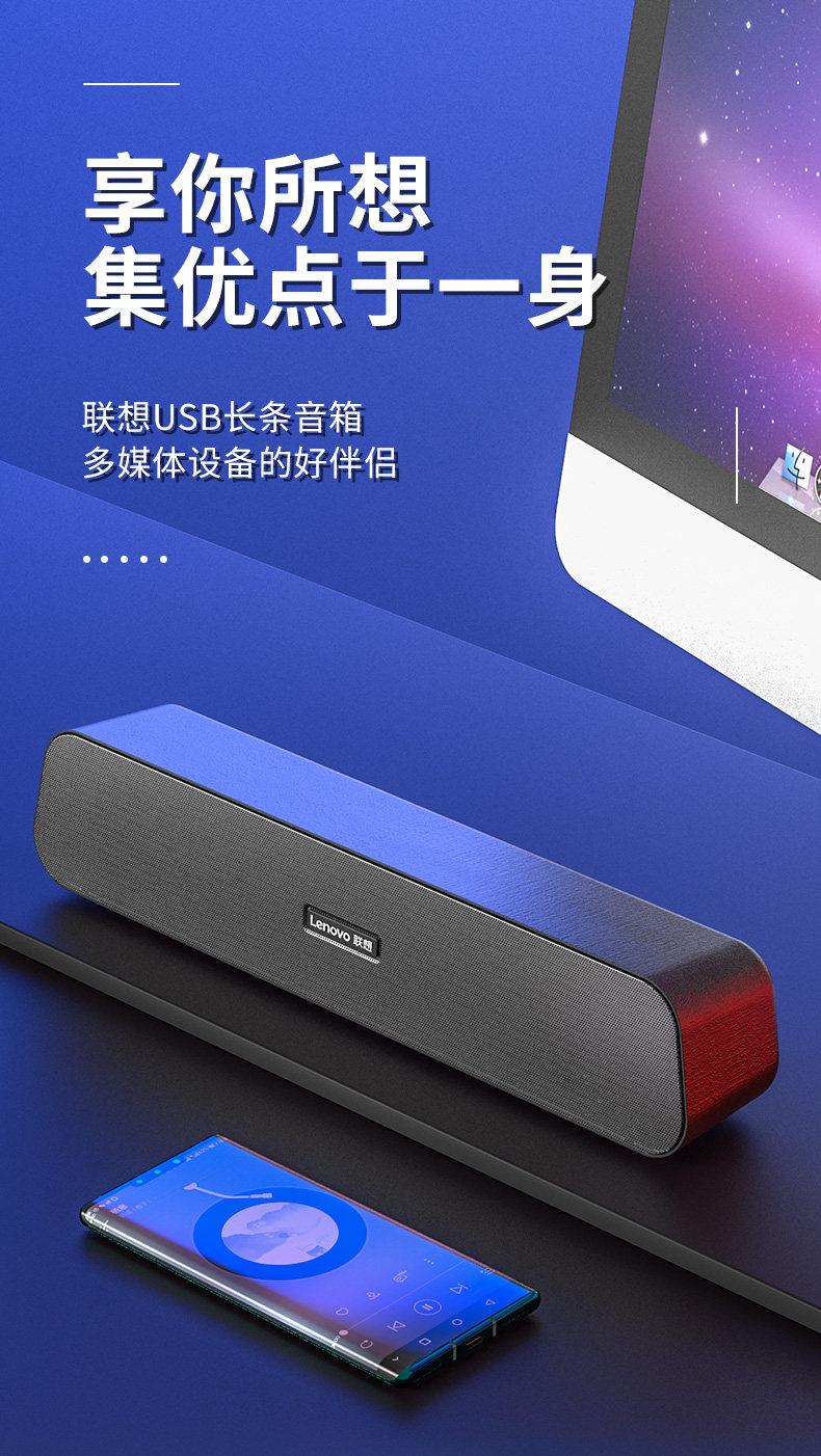 Lenovo компьютерный звук Sudder кабельный кабельный динамик мультимедийный ноутбук Ultra -Heavier нижний Trumpeit Long Bar