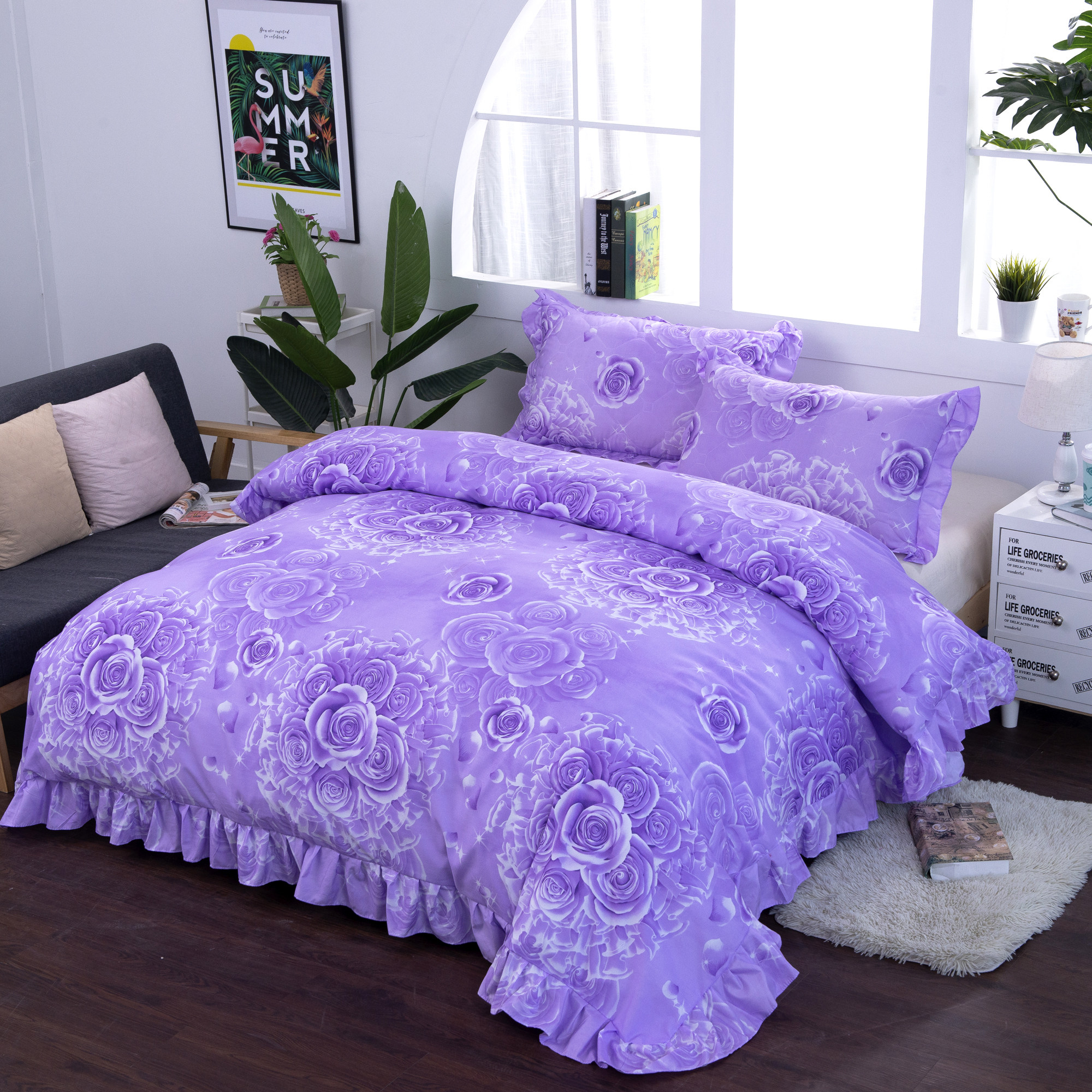 Корейский стиль увеличил двойное кружевное стеганое одеяло 220cmx240cm кожи -дружеская кожа простая четыре сезона универсальная кровать