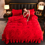- Кровать длиной 1,8 м, комплект из четырех предметов [пододеяльник 200х230см, юбка 180*200см, наволочка*2]