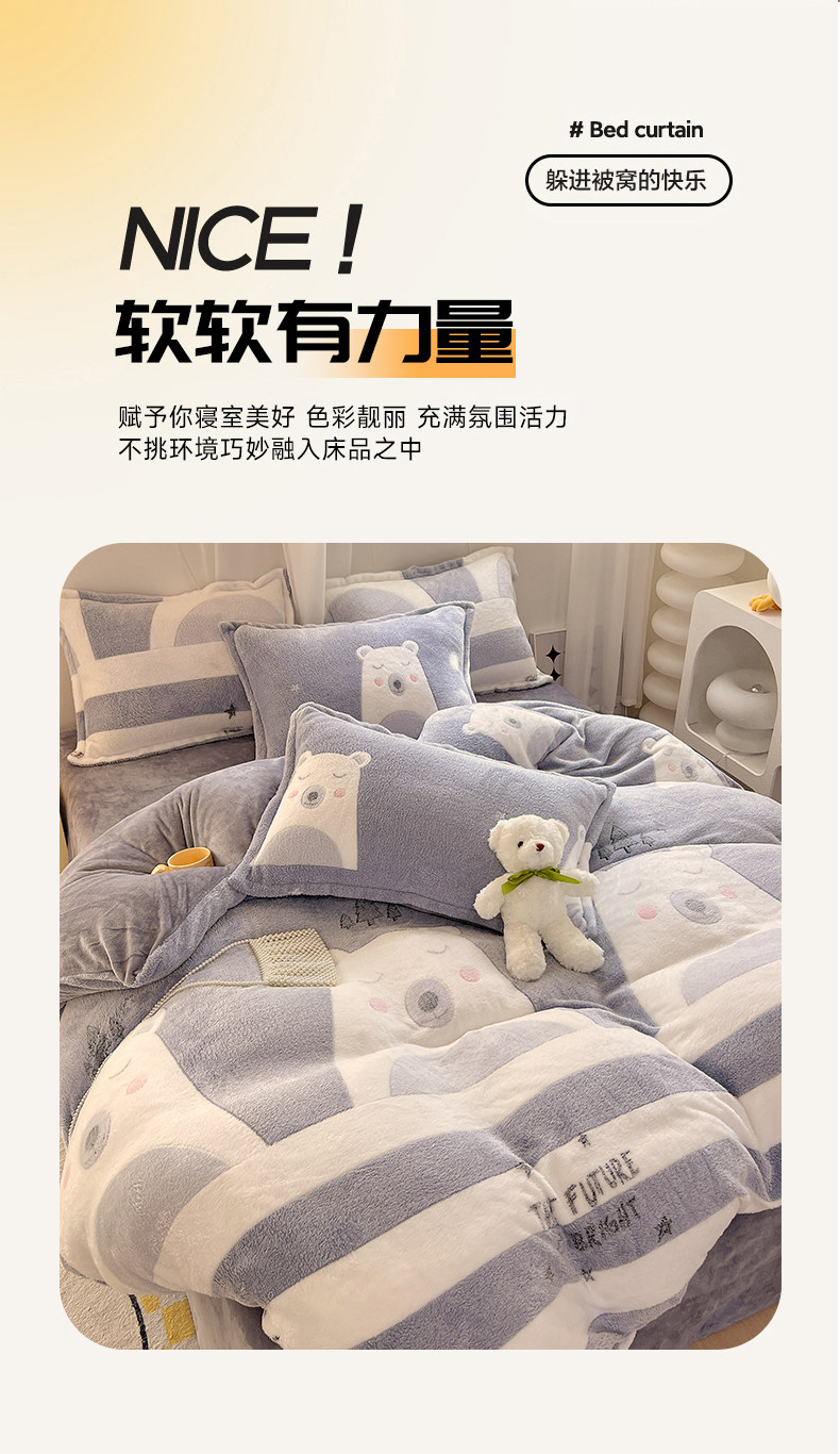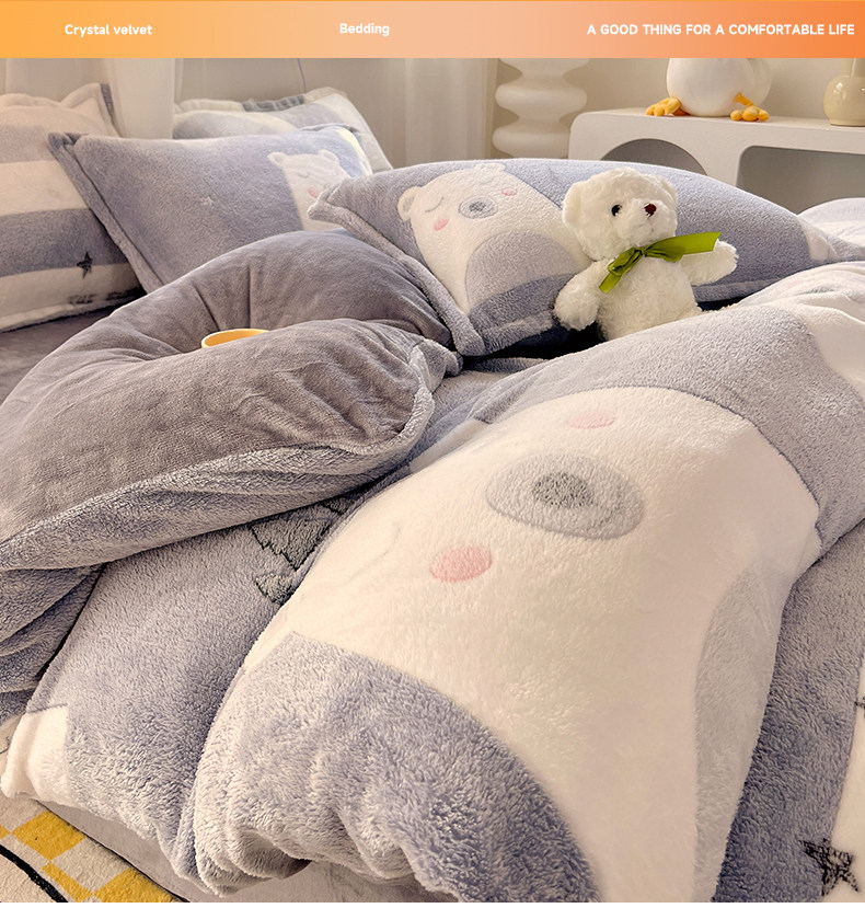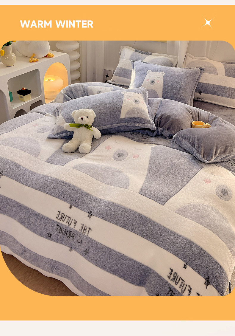 Мультяшный пододеяльник, утепленный удерживающий тепло коралловый двусторонний фланелевый комплект, 3 предмета