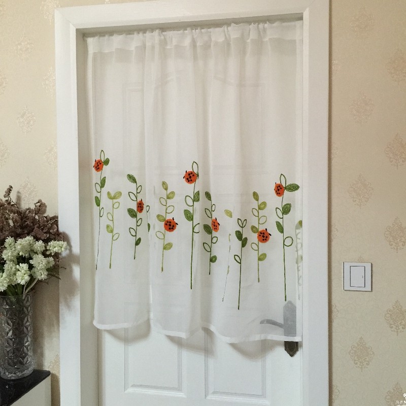 Симпатичный лист маленькая божья коровки вышитые цветы с туманные газовые дверные занавес наполовину занавес