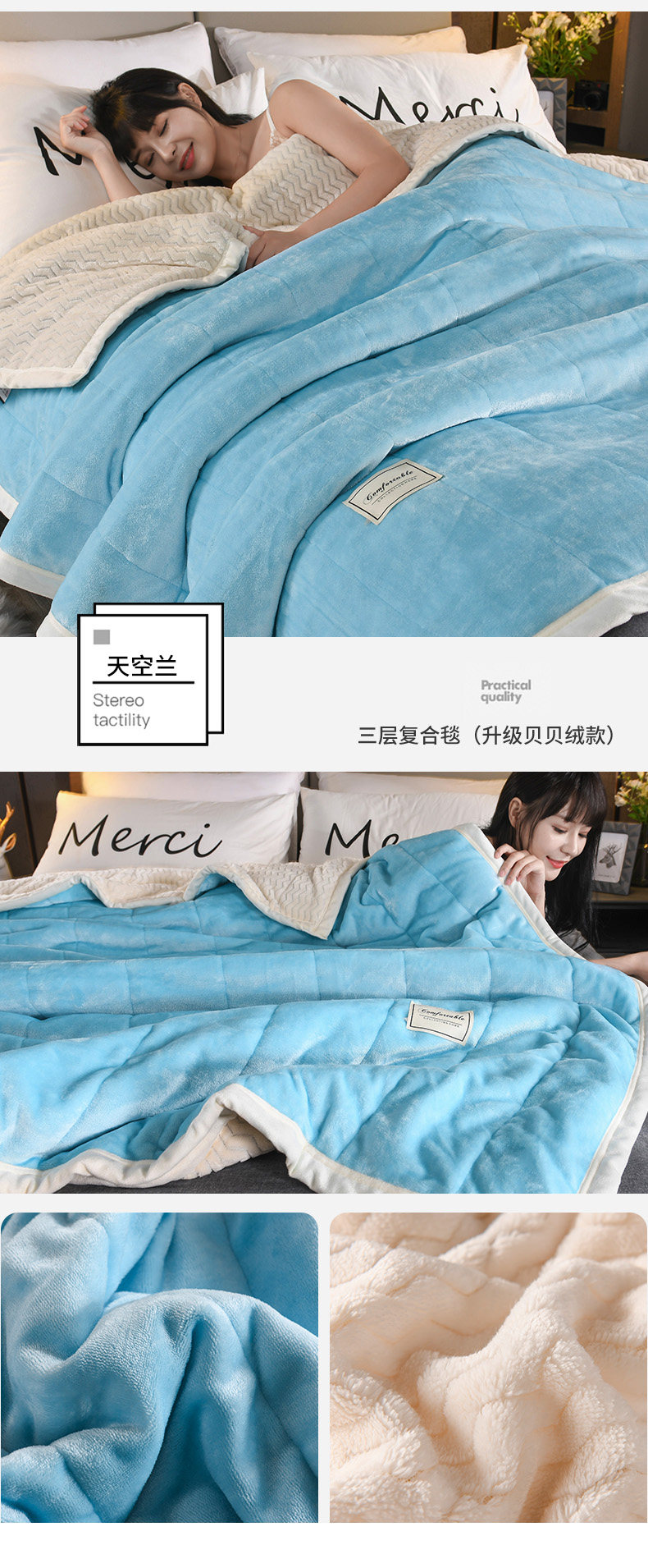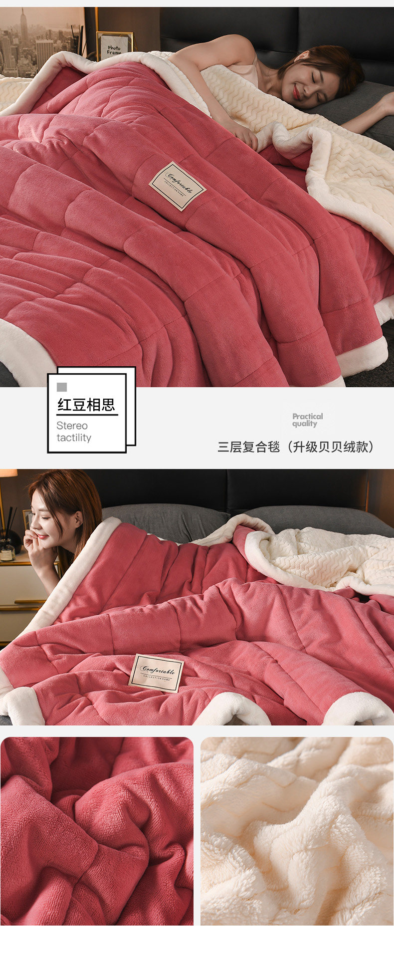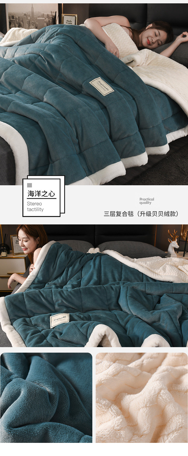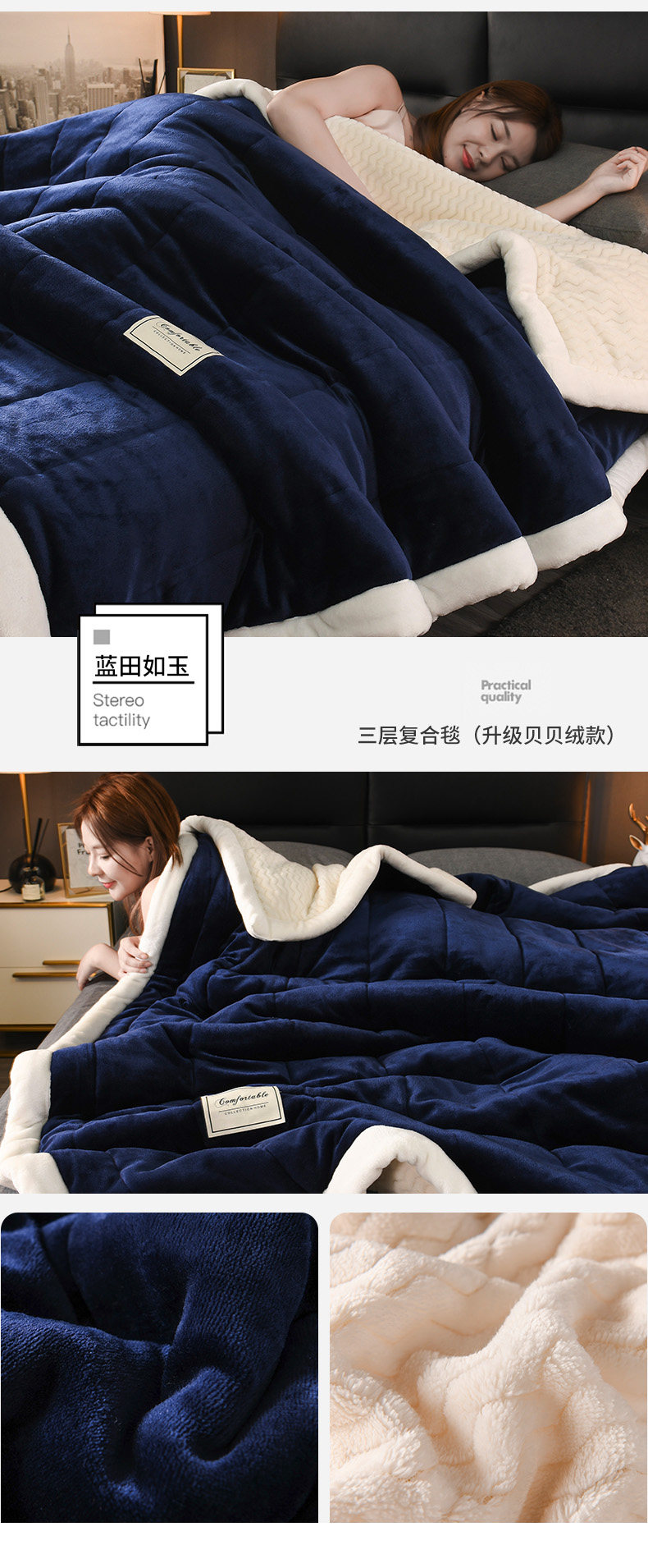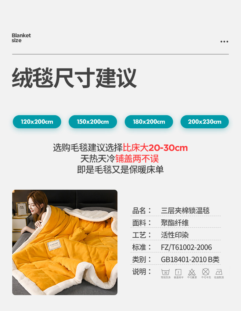 - (Двойное одеяло) 200CMX230CM [3 слоя скорости утолщения теплой теплоизоляция кожа мягкая]