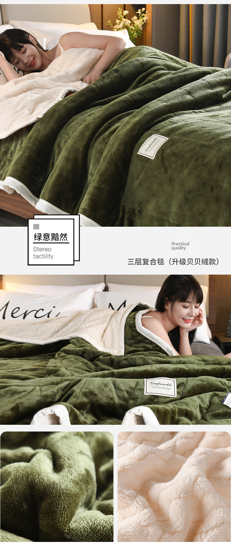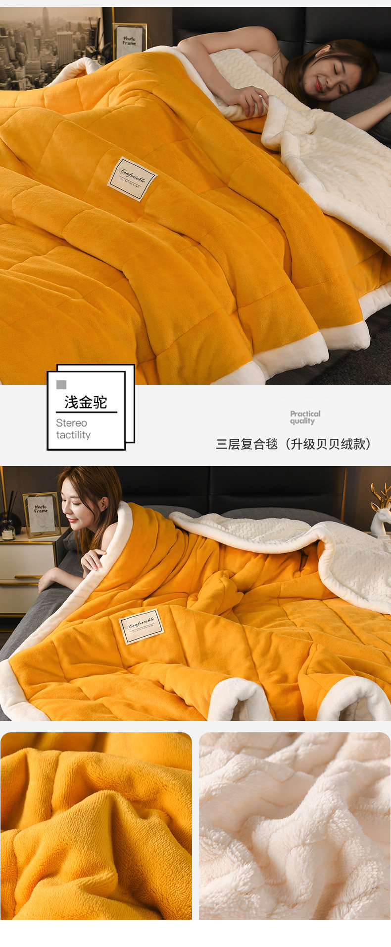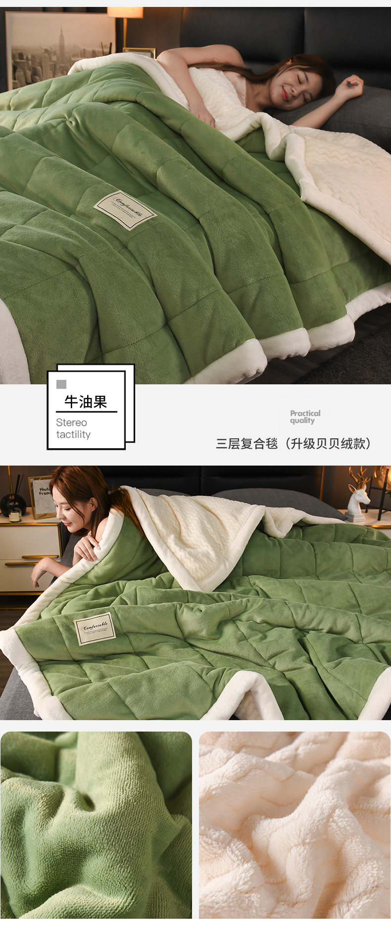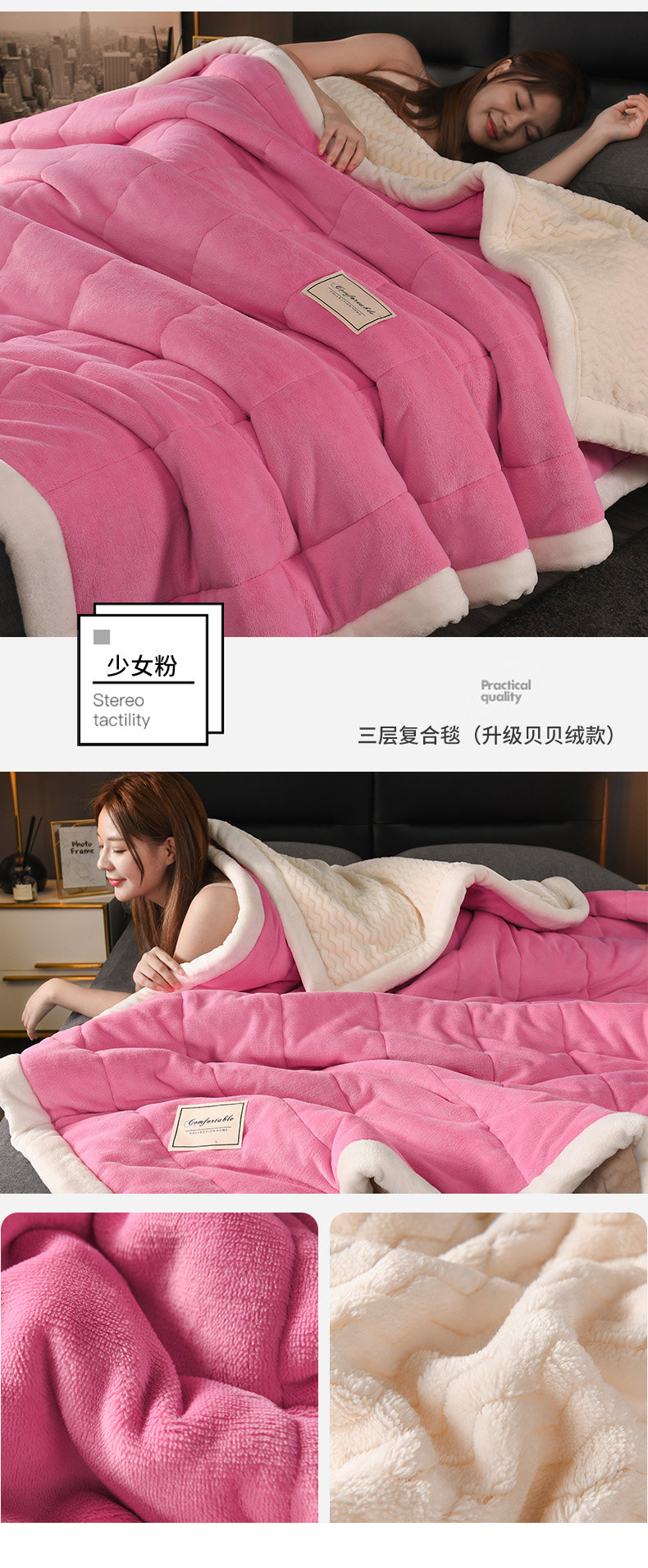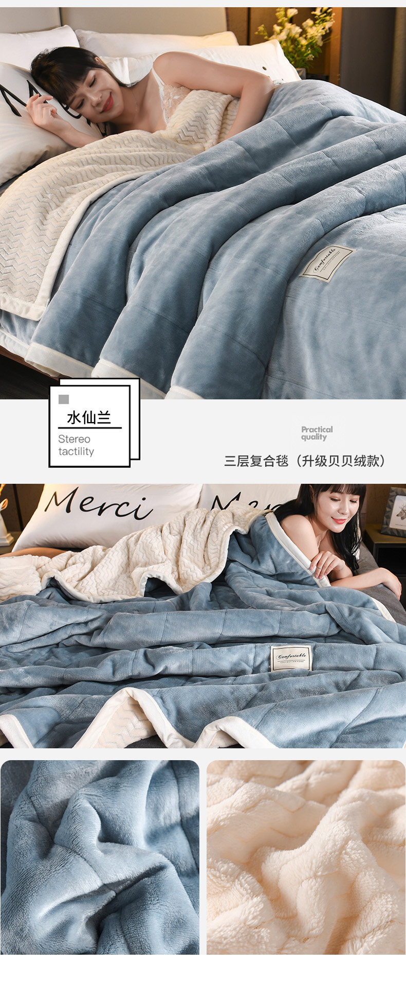 - (Двойное одеяло) 200CMX230CM [3 слоя скорости утолщения теплой теплоизоляция кожа мягкая]