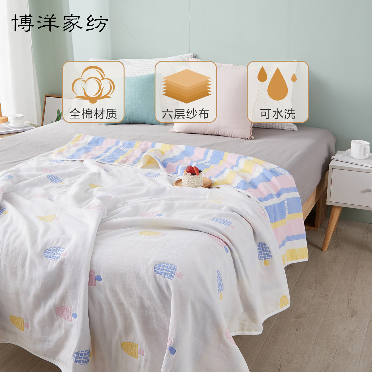 博洋 Детское хлопковое марлевое одеяло, летнее банное полотенце