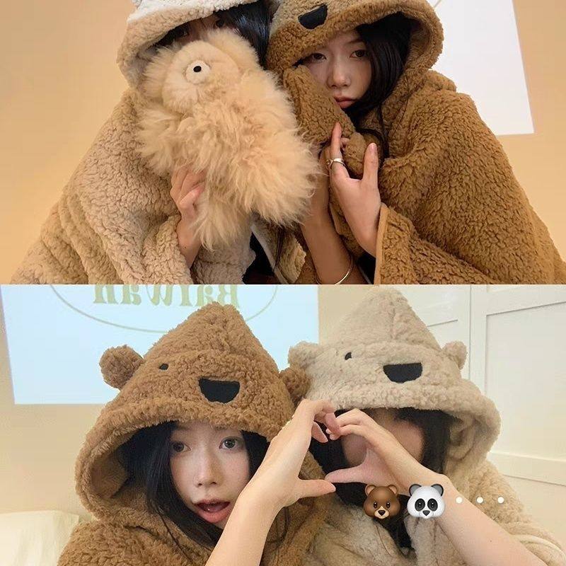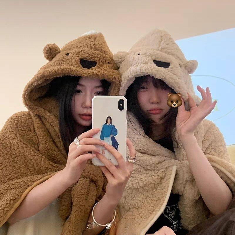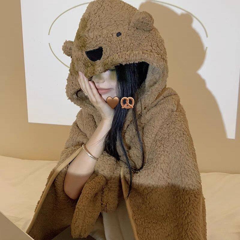 Милое одеяло, накидка, демисезонный плащ для школьников, с медвежатами