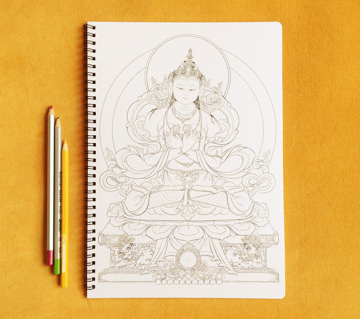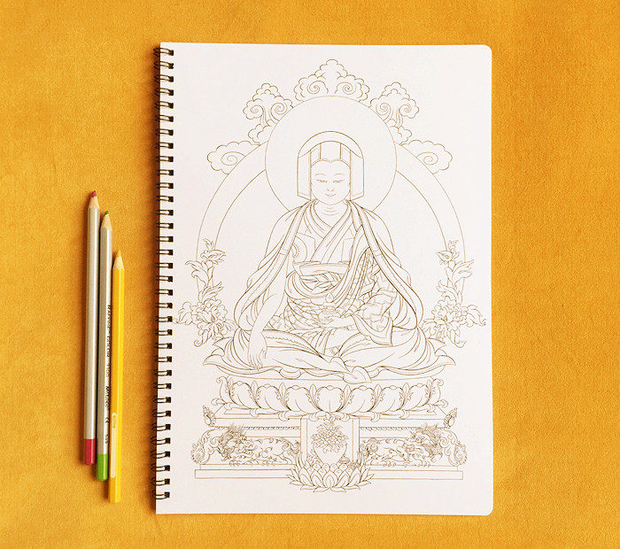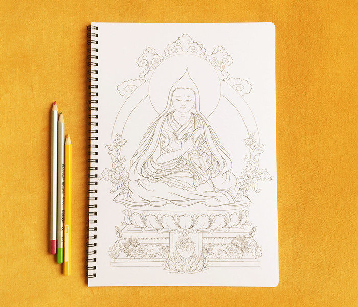 Оригинальный дизайн цветового мира Thangka раскраски.Размер: 30x21см. 7 Внутренняя страница, с объемом с 8 картинками.
