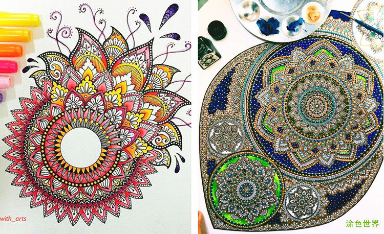Раскраска, акварель для взрослых, ручная роспись, антистресс