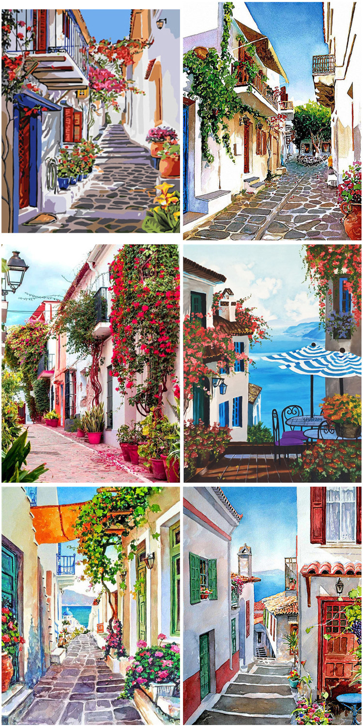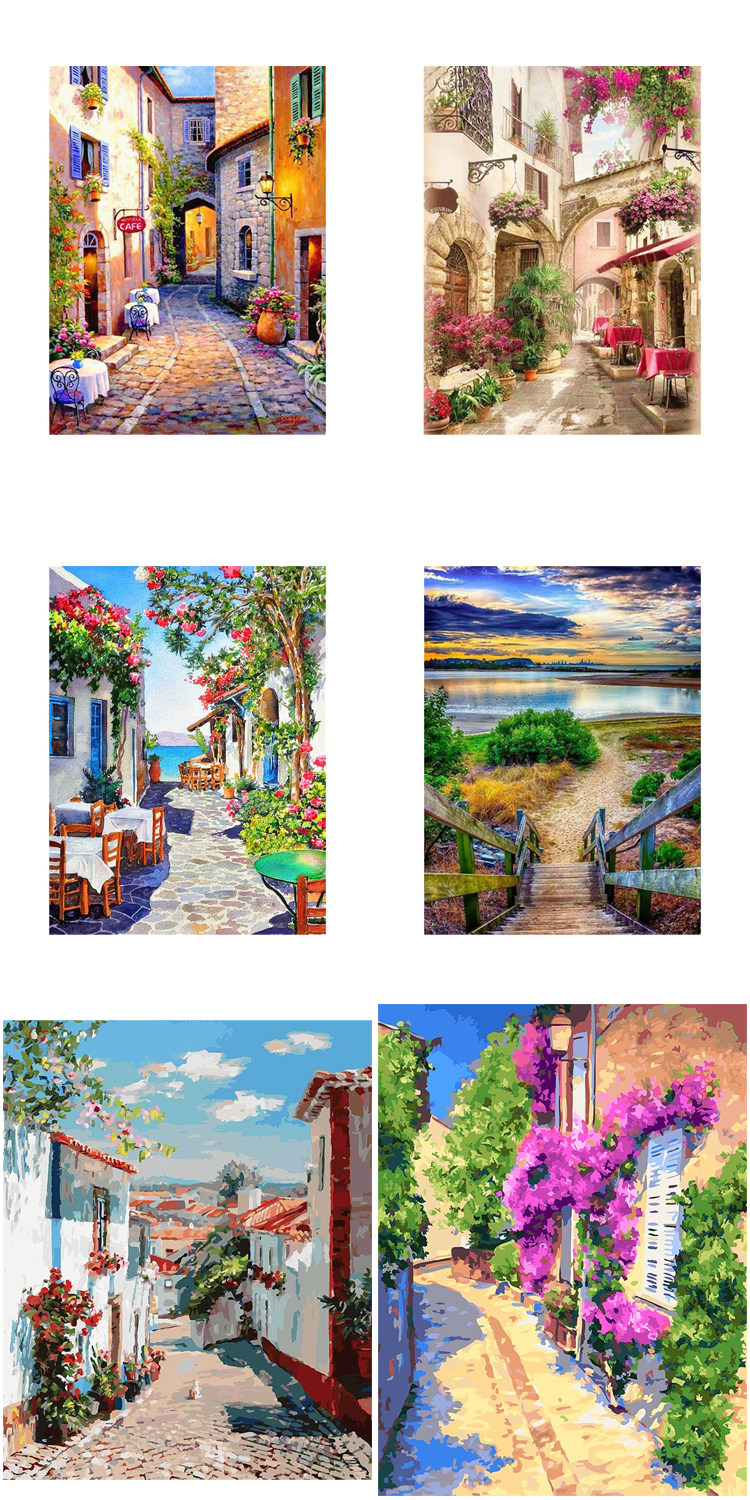 DIY цифровая картина маслом раскраска парк цветочная переулок весна романтический шифер ретро город украшение дома новый стиль
