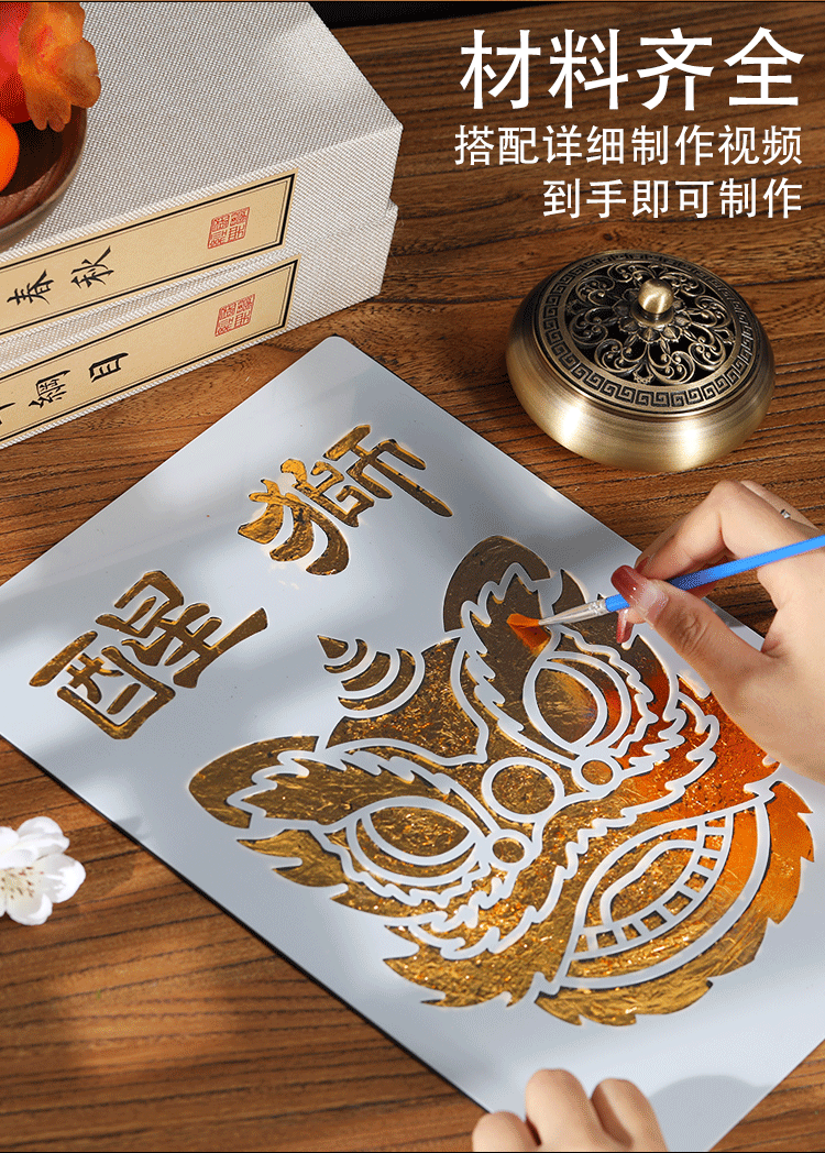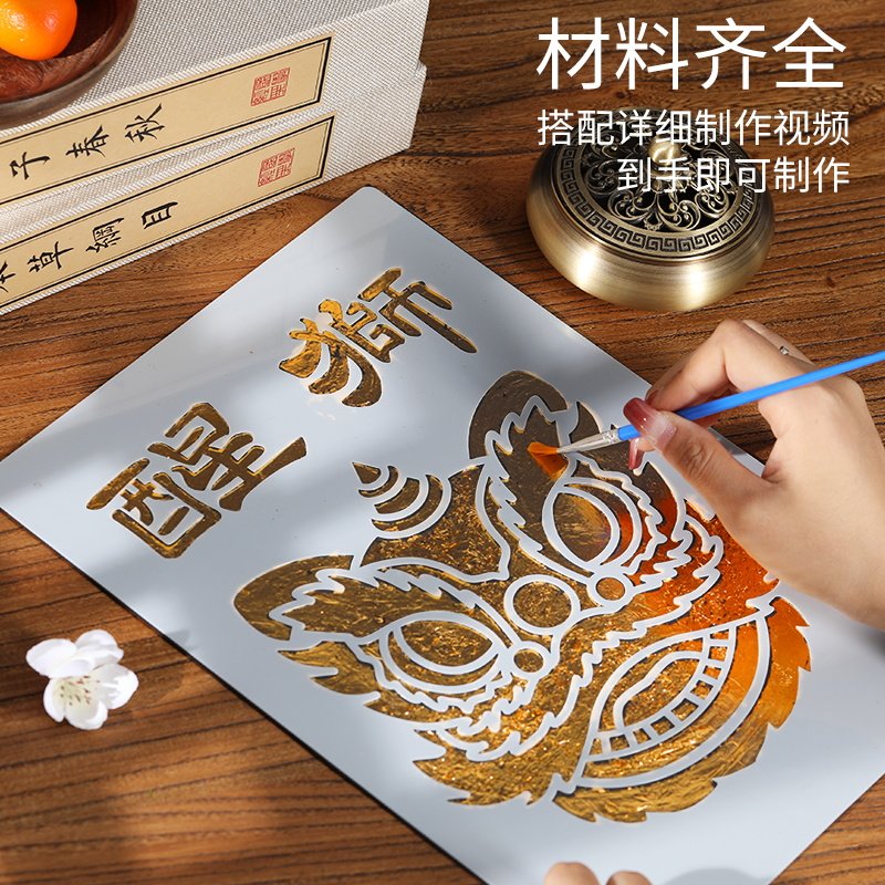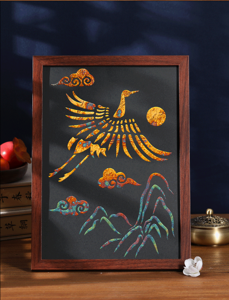 Роспись золотой фольгой, нематериальное культурное наследие своими руками, упаковка материалов ручной работы, роспись обожженной фольгой, роспись, фоновая стена, натирание медной фольги, декоративная роспись, роспись