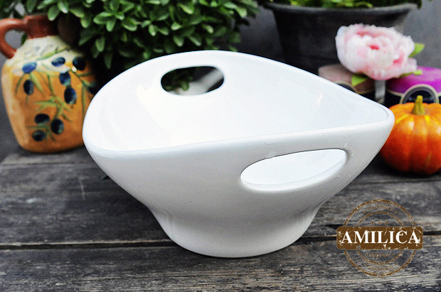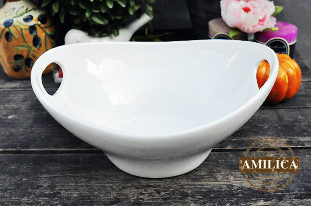 Белая ваза для фруктов в форме двуухого слитка, ваза для фруктов, большая суповая тарелка, большая салатница, большая миска для приготовления пищи