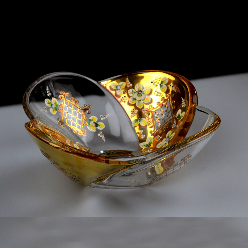 Qo Чехия импортированная богемия Посмианское хрустальное стекло, борьба с борьбы с золотом рисунок золотые хрустальные фрукты
