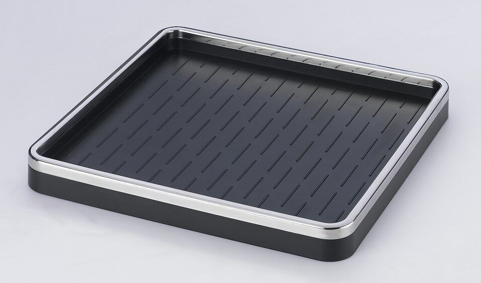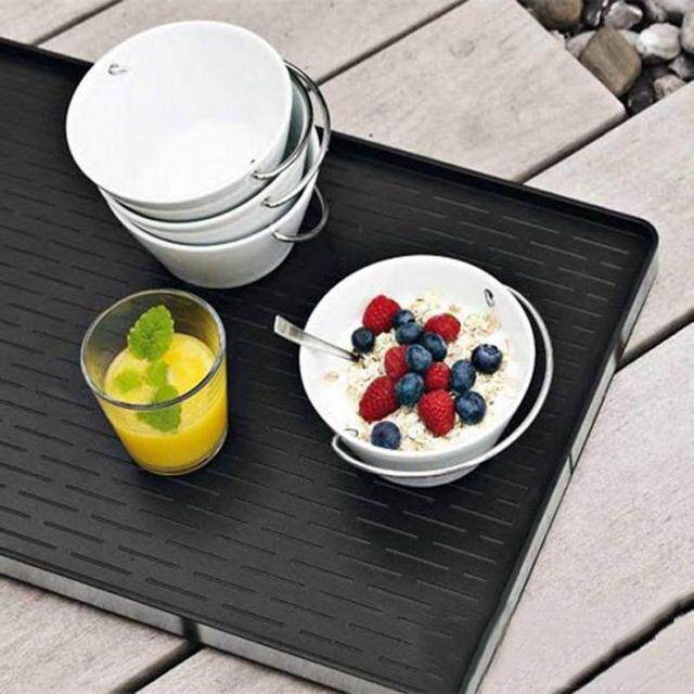 Новый поднос Eva Solo разработан с Ridge Rifples в нижней части тарелки, чтобы увеличить трение между дном чашки и тарелкой, подчеркивая гладкость и безопасность поддержки при ходьбе.Материал в нижней части пластины изготовлен из твердого черного пластика, а края пластины из нержавеющей стали с широкой стороной образуют H -образную твердую конструкцию. Не деформируется из -за марионеток.