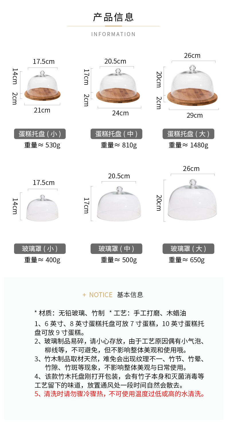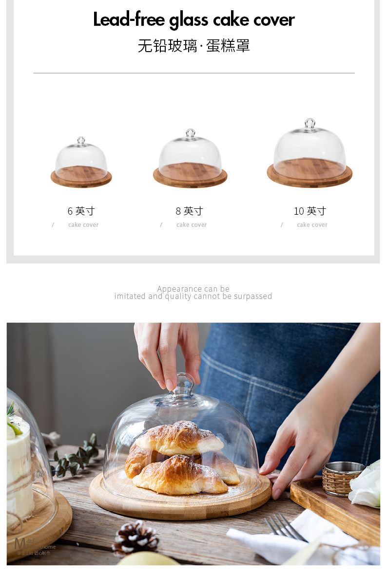 摩登主妇 Стеклянная крышка для торта с деревянной демонстрацией для десертных закусок с фруктовым диском.