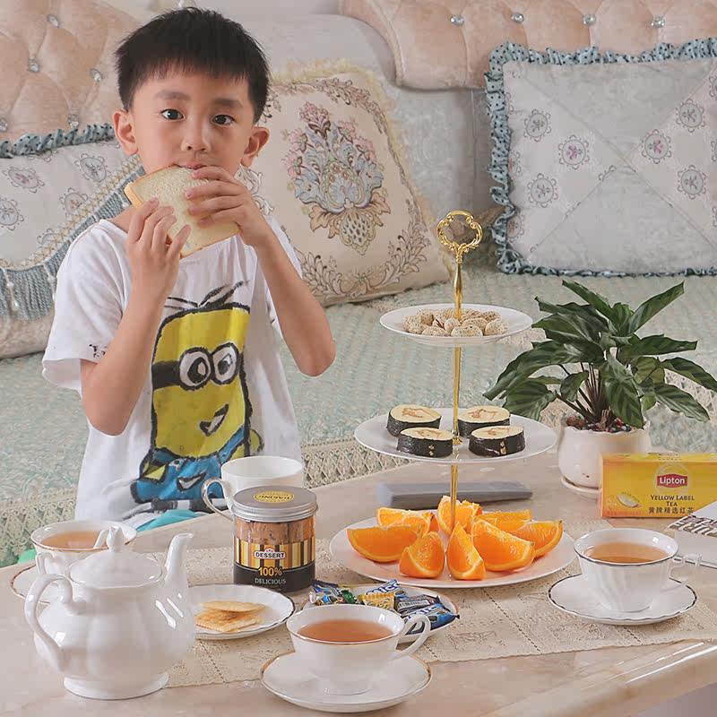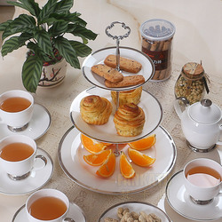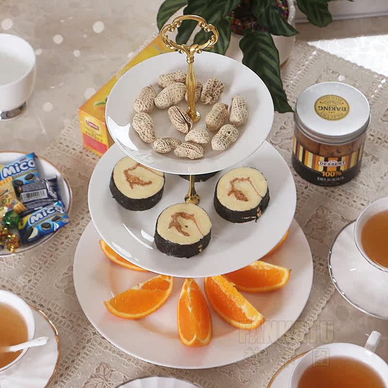 Высококачественная костяная фарфора с чистой белой дневной дневной дневной плитой трехслойной стенд европейской современной гостиной двойной фруктовой тарелки