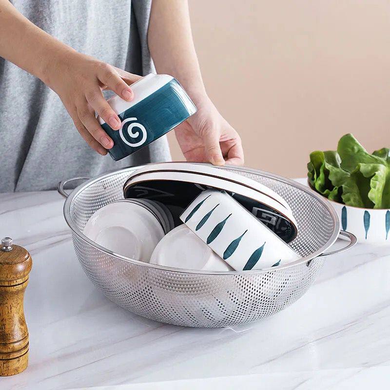 304 Неограниченная толщина двойная одноручная корзина из нержавеющей стали с основанием, небольшие плотные отверстия, рис 箩 бассейн для мытья фруктов