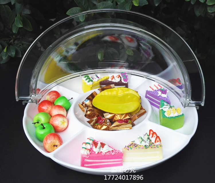 Имитация мультигридной трехгридной четырехгридной фруктовой пластины с четырьмя грибами, чтобы съесть тарелку с крышкой пластиковой круглой десертной стойки
