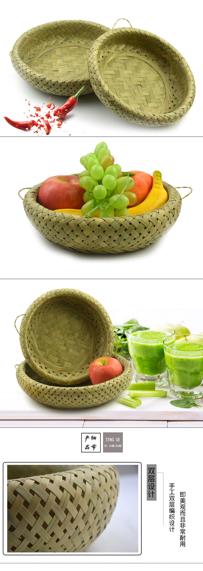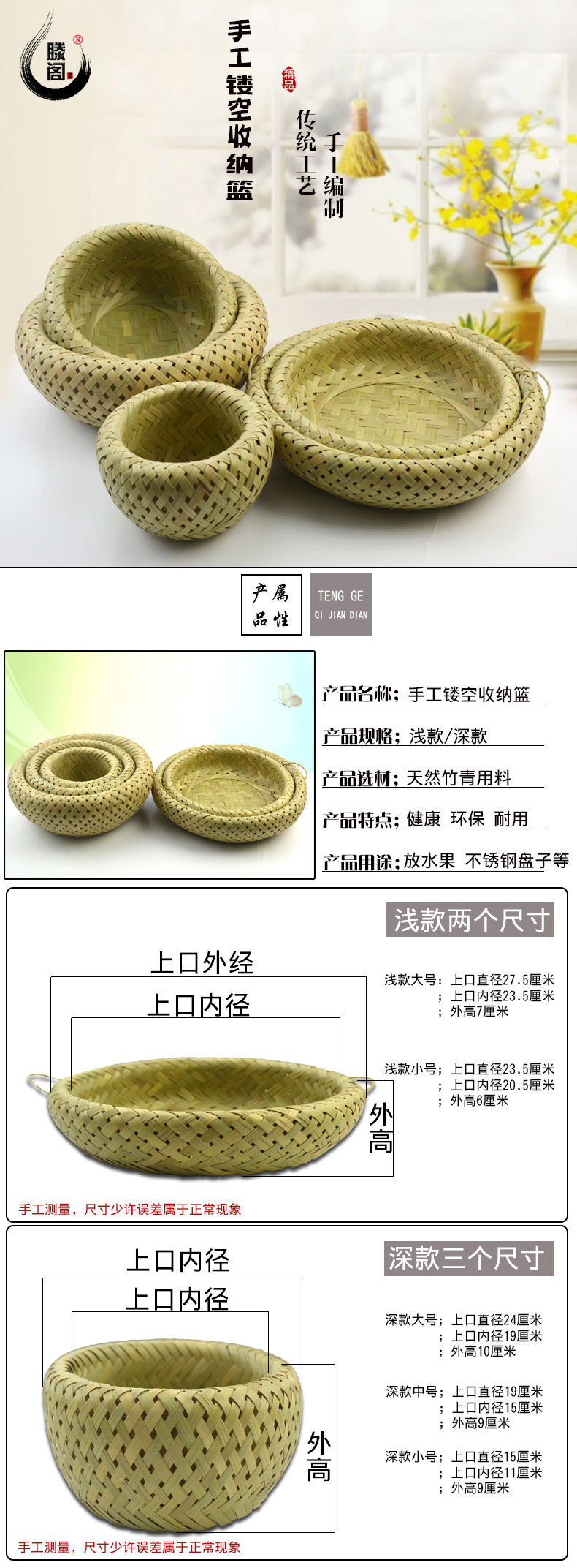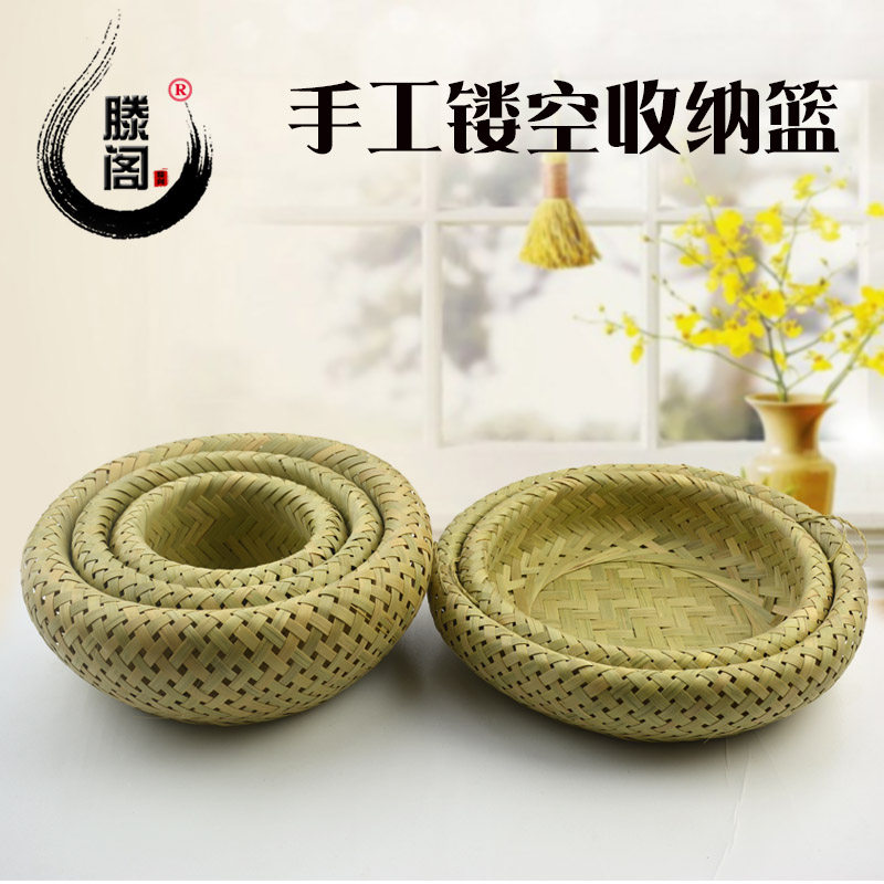 滕阁 Бамбуковая корзина для хранения, пыль, бамбуковая корзина конфеты, фруктовая фруктовая ручная рука китайская сельская защита окружающей среды Бэмбук Бамбук Корзина