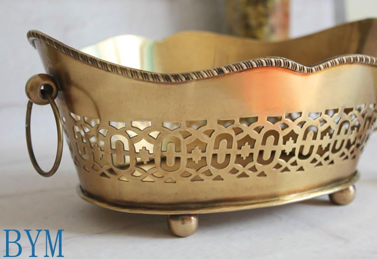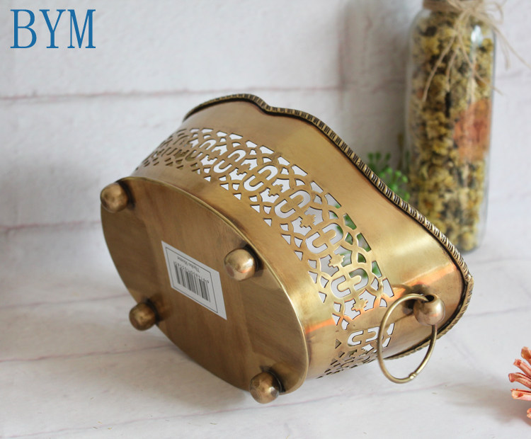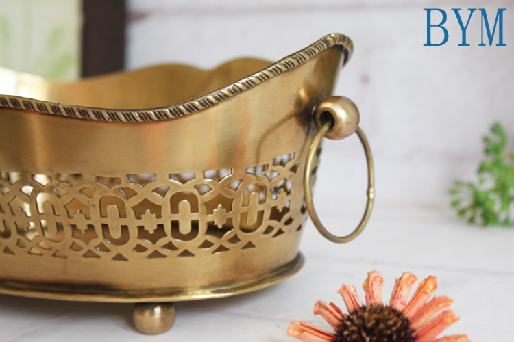 Европейская и американская индейская латунь ручной работы из чистой меди, полая, маленький синий поднос для фруктов, тарелка для сухих фруктов, высококачественные декоративные украшения