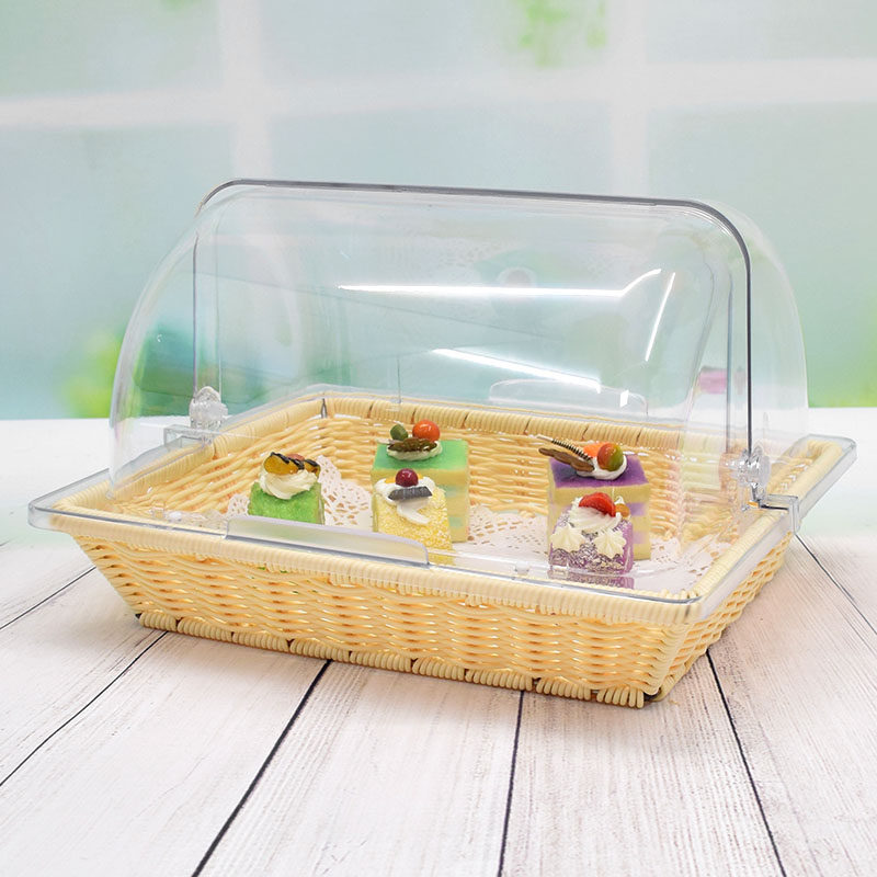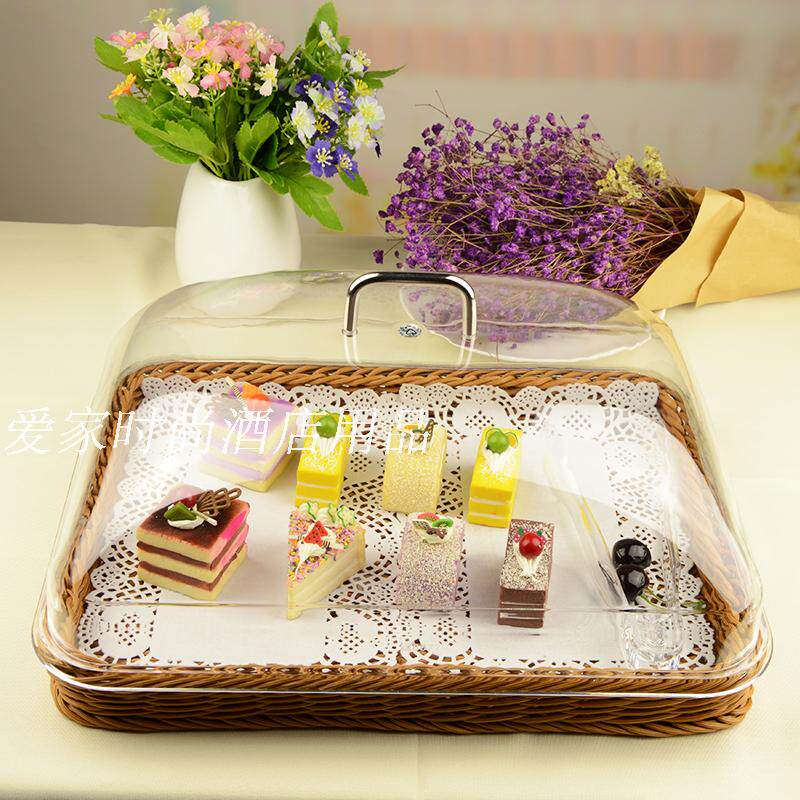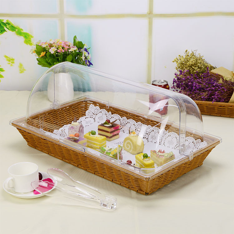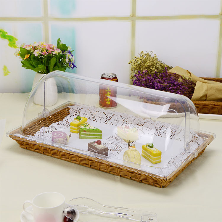 Корт -корзина с закусками с закусками с фруктами с пищевыми поддонами, чтобы попробовать шведские шведские стойки, чтобы сохранить пыль и пылепроницаемость прозрачного покрытия