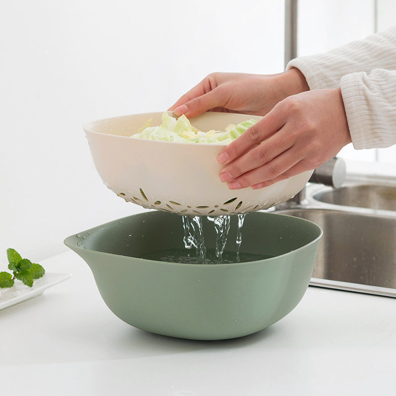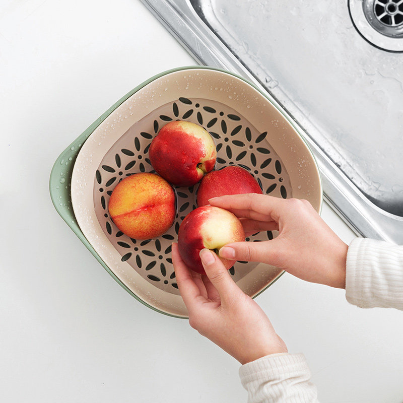 Двойной слой пластиковый фруктовый бассейн для мытья корзины фруктов, корзина для мытья корзины для домашней корзины, кухня для мытья бассейна