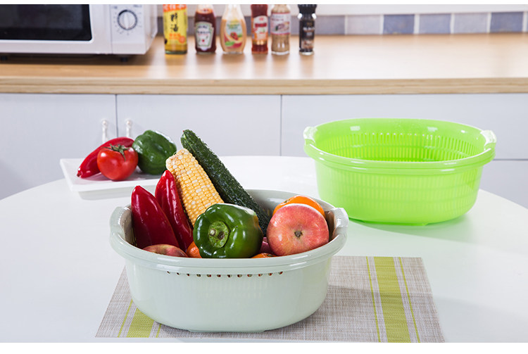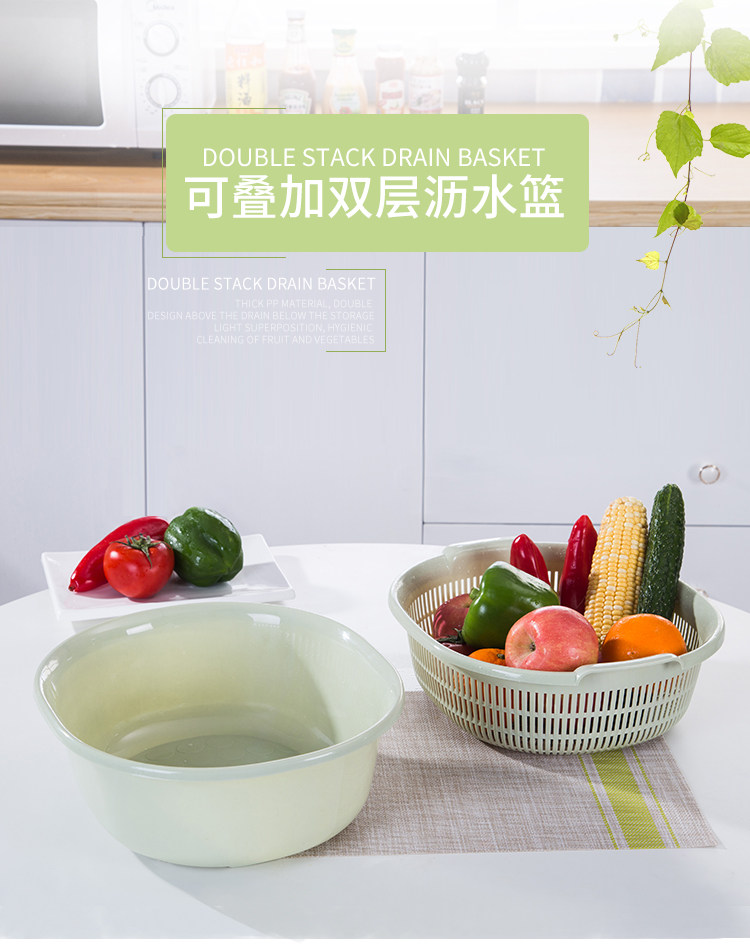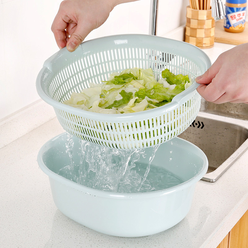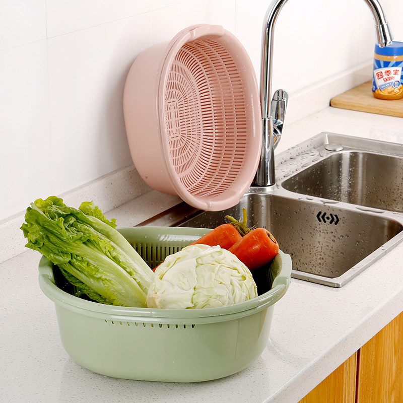 Пластиковая двухслойная корзина для овощей, сливная корзина, кухонная корзина для овощей, бытовая многофункциональная круглая корзина для овощей, корзина для фруктов
