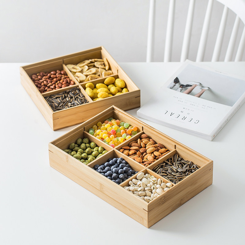 Творческое разделение в стиле японского стиля с сухой фруктовой тарелкой много -функциональная закуска конфеты диск гостиная фруктовая тарелка бамбука и деревянная ореха коробка