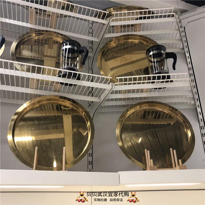 Wuhan Ikea домашний покупательский агент Gratis Tray Plate Plate Plate Plate Fruit Fruit Fruet The Heanless Steel Gold Plate Круглый лоток