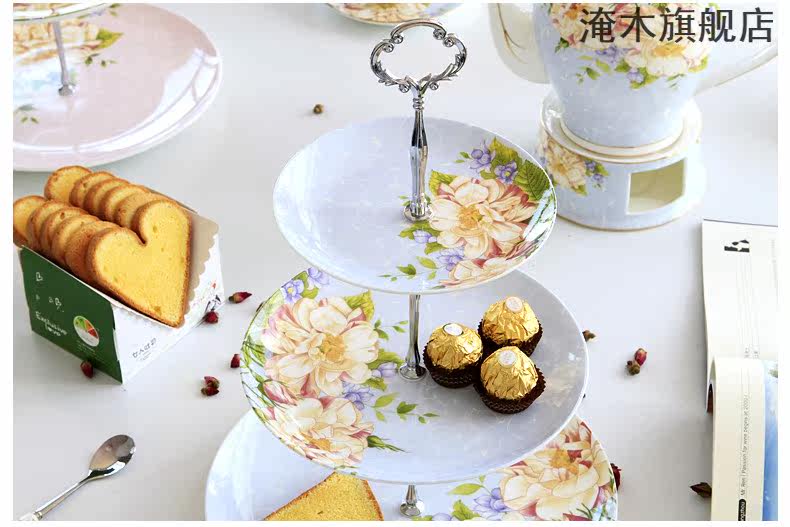 淹木 Европейская стиль димсам Трехлоковая фруктовая тарелка костяные фарфоровые закуски послеобеденный чай набор сухой фрукты керамический пирог