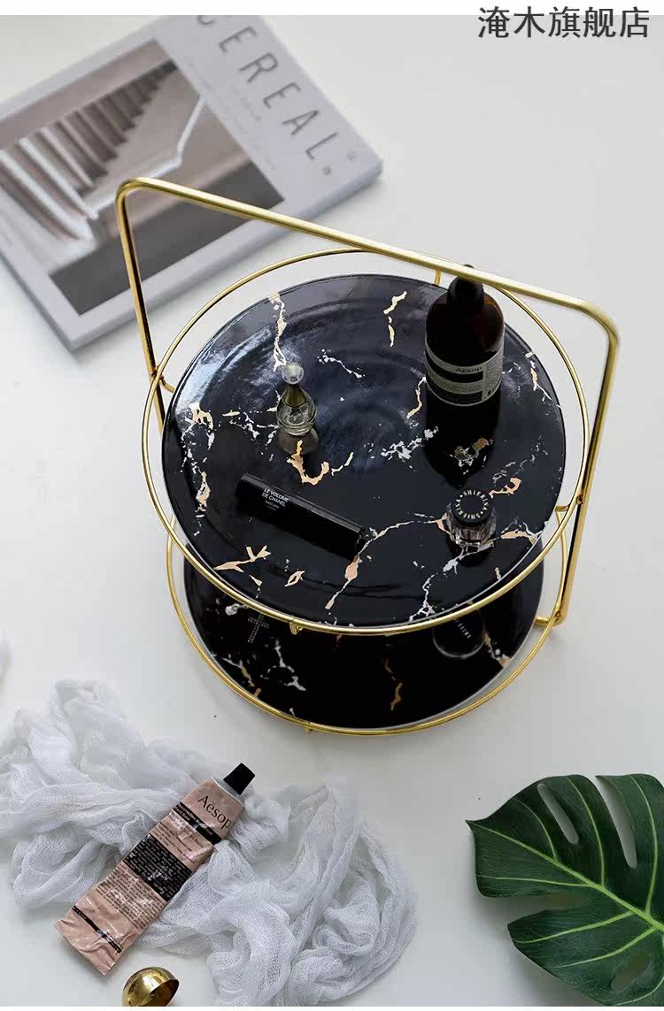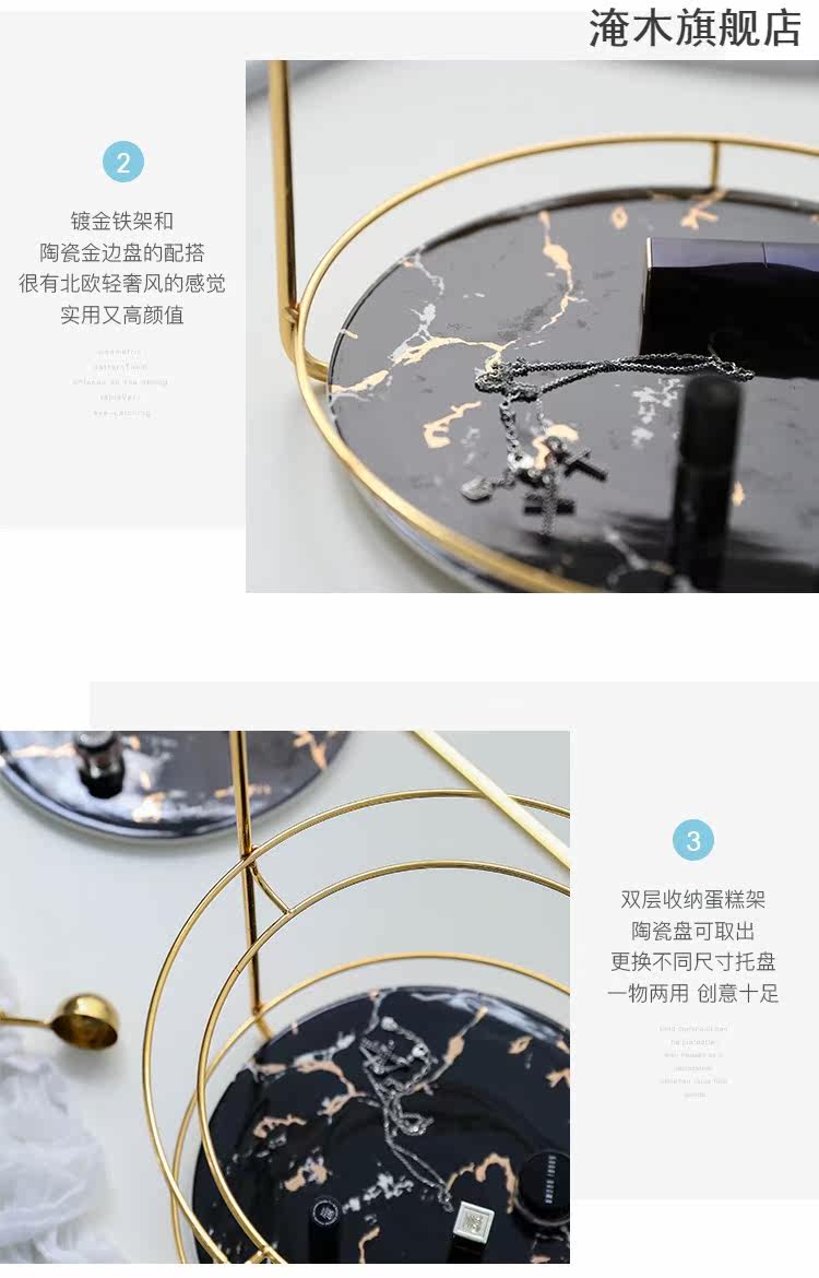 淹木 Северный легкий роскошный стиль керамический керамический двойной фруктовый пирог на полке на полке стола хранения хранения хранения с золотом железом