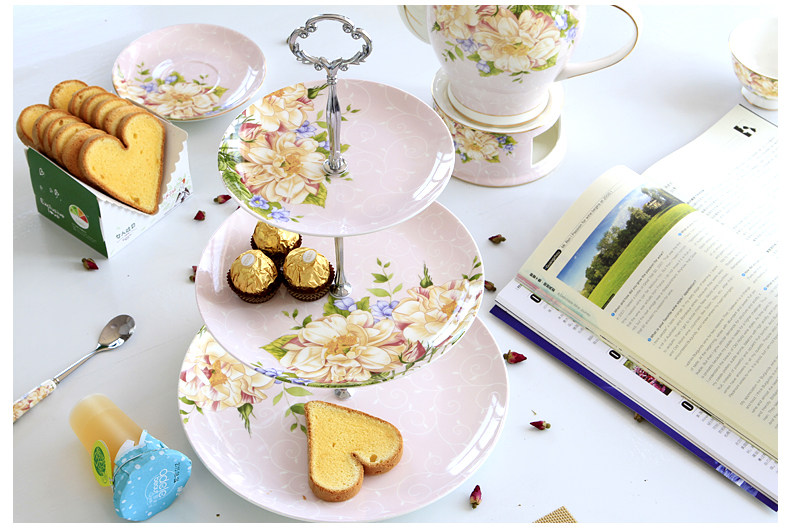 思芒 Европейская стиль димсам Трехлоковая фруктовая тарелка костяные фарфоровые закуски послеобеденный чай набор сухой фрукты керамический пирог