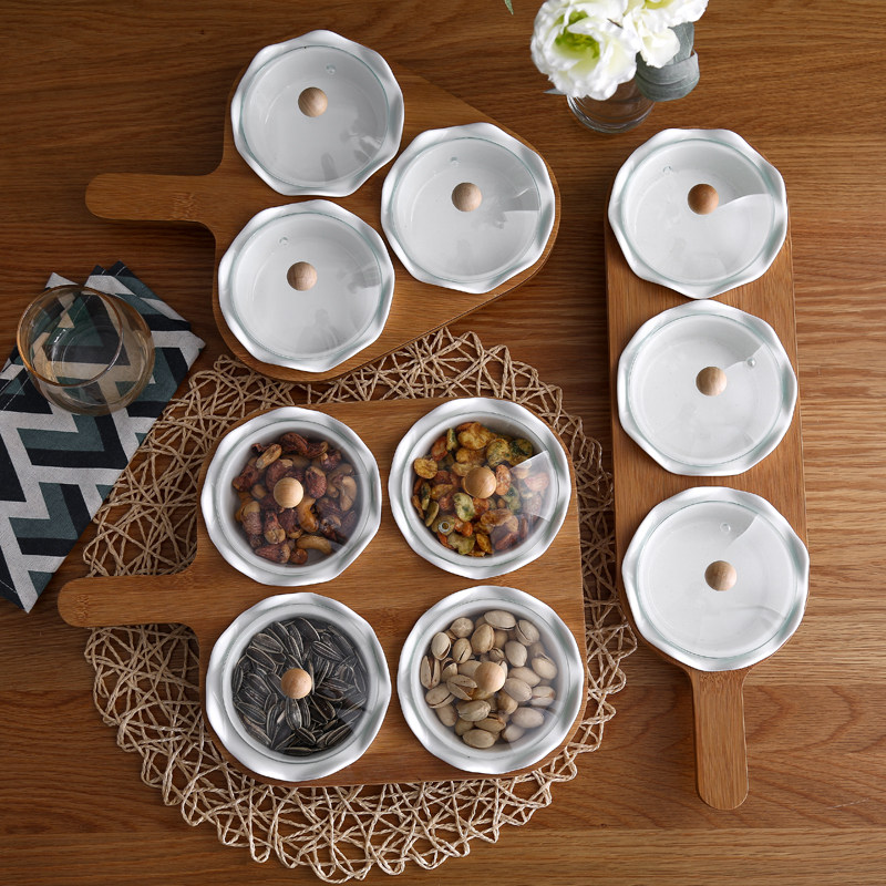 Новый продукт керамическая конфетка корабли сухость фруктов фруктовые пластина скандинавский ветер с бамбуковым деревянным шельфом стеклян