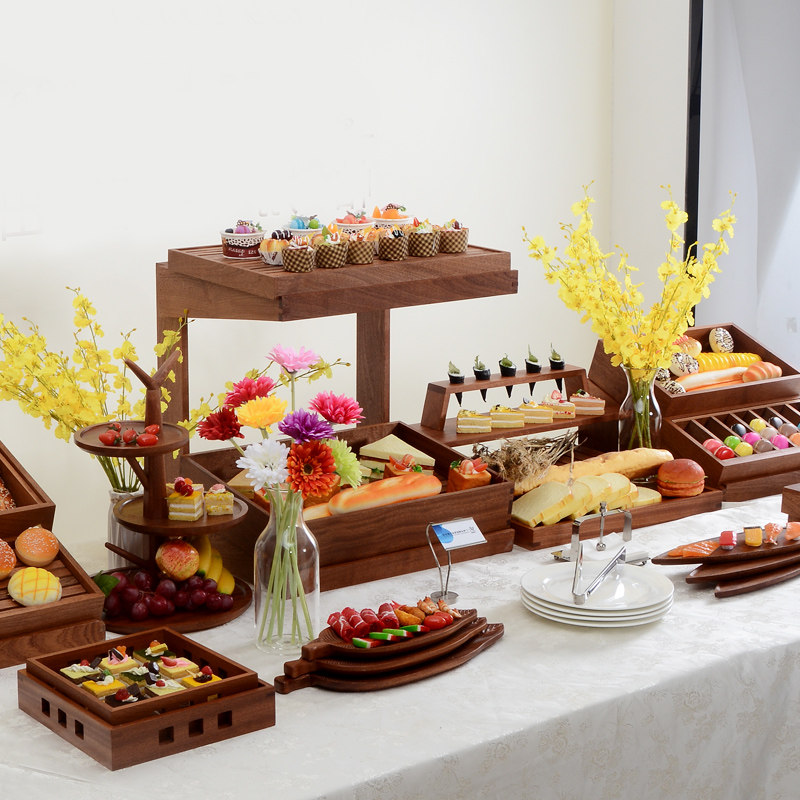 Деревянный десерт -шоу показ свингет фуршет холодные блюда чай кусочек кусочка торт торт торт на кипке