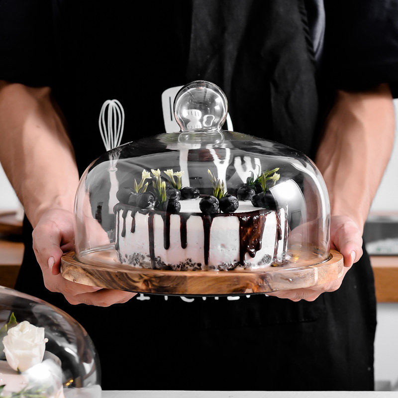 McCaren вращающееся Xiangmu Cake Plate Pizza Dessert Display Glase Glass Cood с крышкой для съедания тарелки