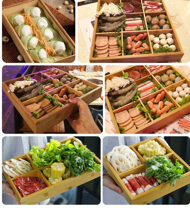 Jane Creative Infure Hot Pot Shop Bamboo и деревянная посуда Jiugi Pack Box Wooden Jiugong Gan Gan Gan Gan Belle Disk Disk